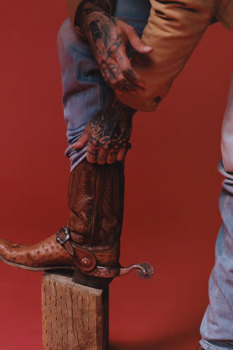 Built around denim, classic shirting, and utilitarian outerwear, the line embraces a distressed aesthetic with starch-finished creases, heavy fleece, and a worn-in texture that nods to vintage American workwear. Each piece channels Post Malone’s personal style — familiar to fans through his on-stage wardrobe — grounding the collection in authenticity, storytelling, and effortless wearability.