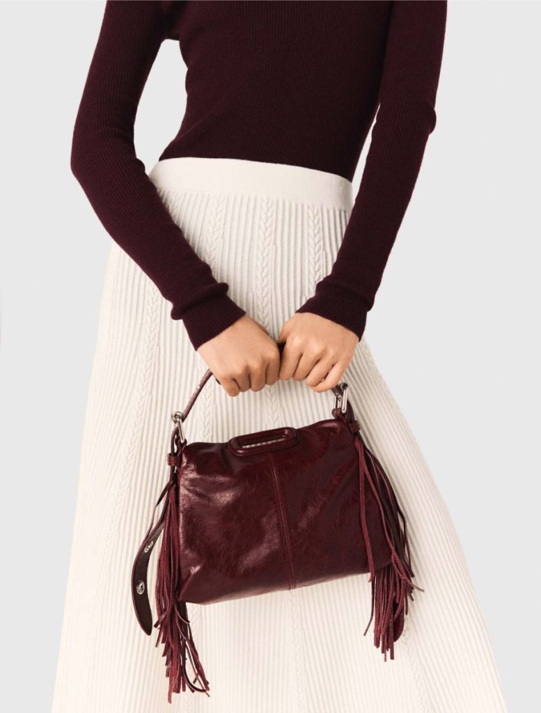 A bag is able to make a wardrobe change; leather bags by Maje do so casually. Structured shoulder shapes are those that are in form, do not bulk up, but rather the shape pushes up to the moment you need it. Compact crossbodies are those that are hidden beneath the body.