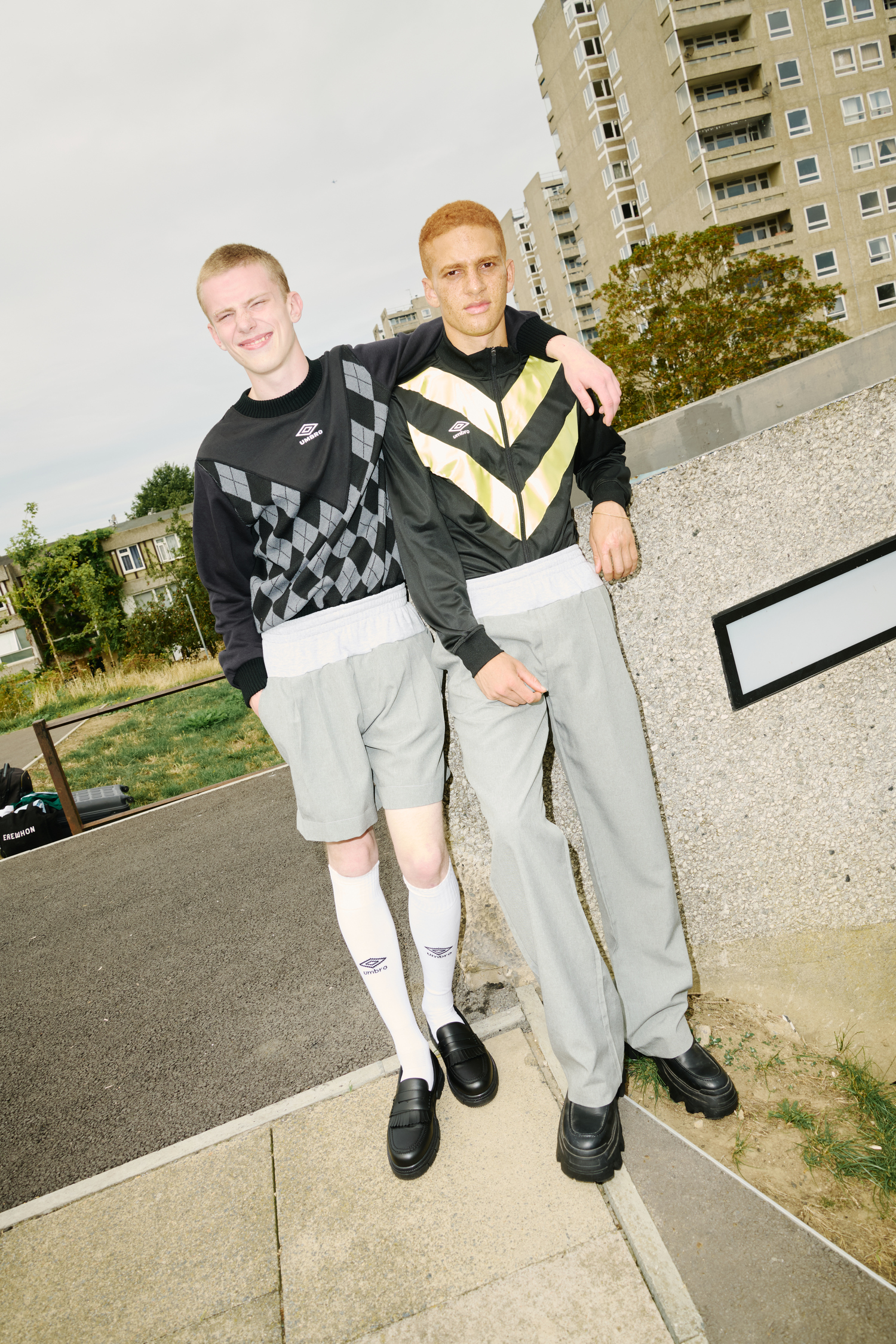 “These pieces are made up of garments from traditionally different environments. That was my goal when I started working with Umbro. We wanted to push boundaries whilst also having fun with it, and that sentiment permeates throughout the collection,” Jones says of the collaboration.