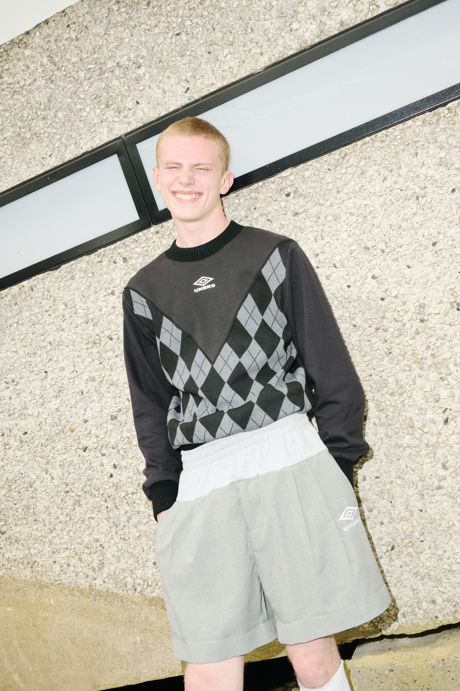 The hallmark ability of British designer Adam Jones to fuse fashion with humour finds sharp new expression in his latest limited-edition collaboration for Umbro, transforming the brand’s deadstock into a collection inspired by the eccentricity of British style – and by the outfits once worn by his own grandfather.
