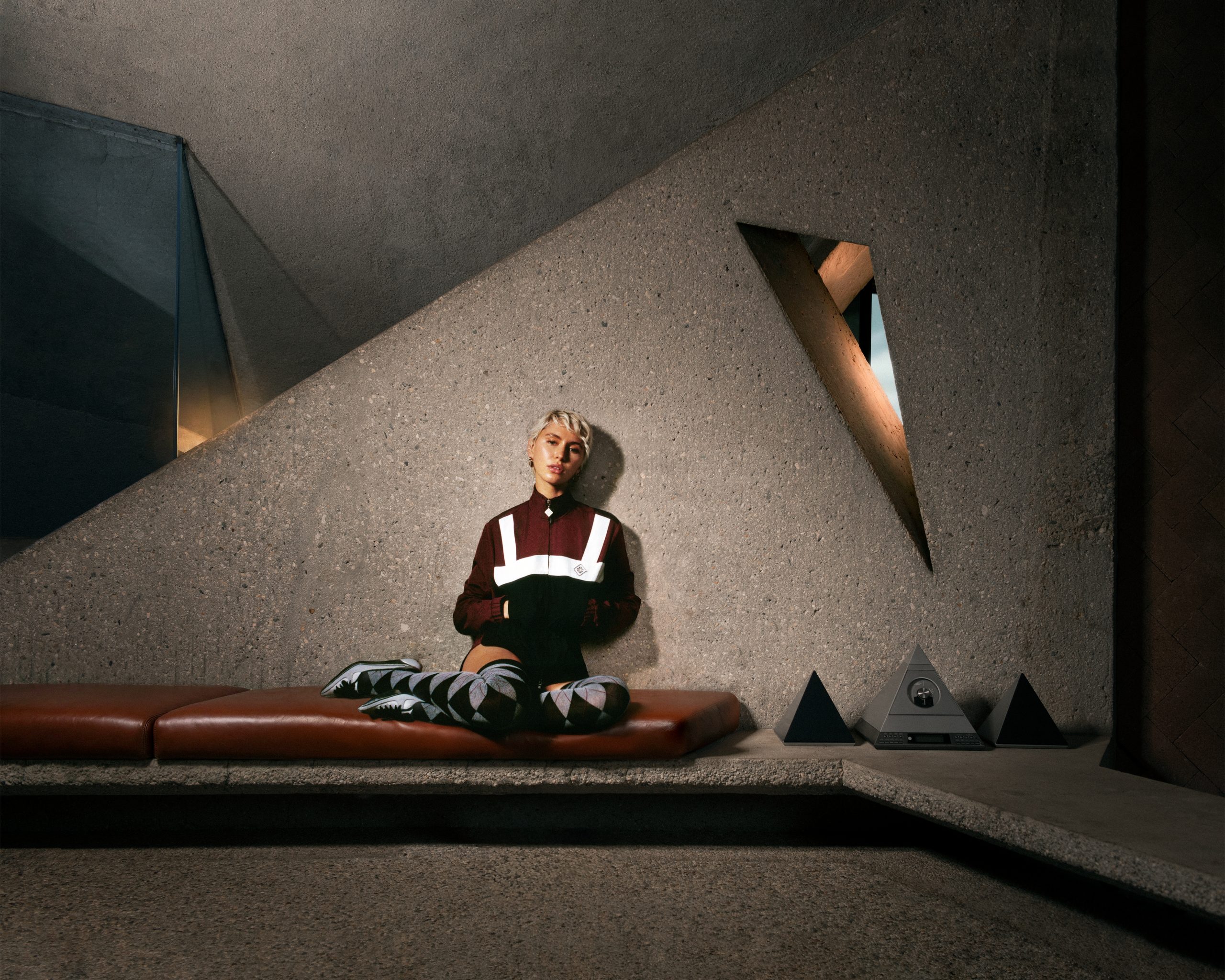 Casablanca turns to Los Angeles for Resort 2026, focusing on a city that has shaped Founder and Creative Director Charaf Tajer for years. The brand’s recent storefront on Santa Monica Boulevard strengthens this connection, yet the campaign offers a more contemplative portrait of the city’s character. Photographed at the Sheats Goldstein Residence, the celebrated home designed by John Lautner, the images unfold as photographer Corentin Leroux captures the mood of a grey and atmospheric night in a luxury LA home.