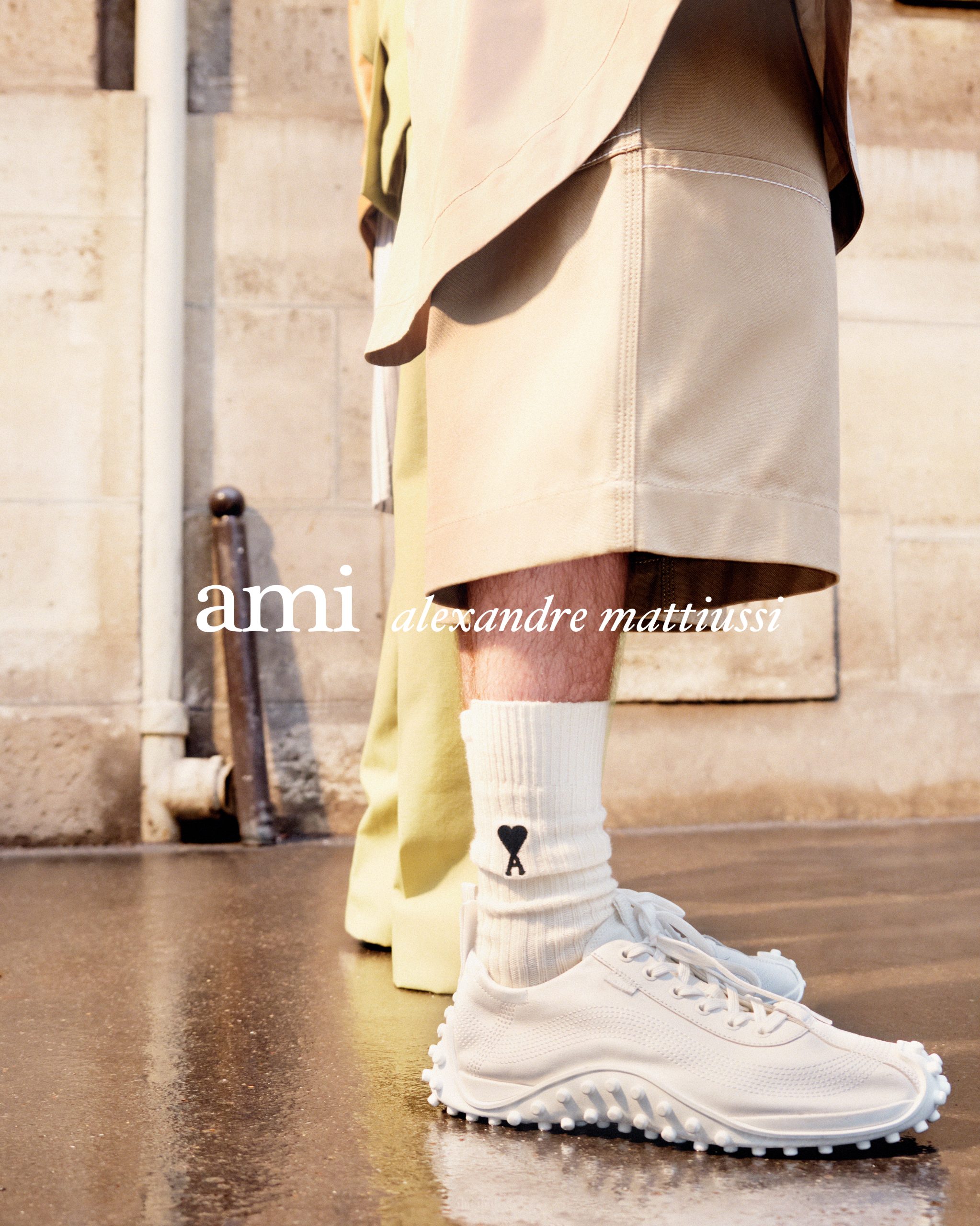 Staying true to Ami’s understated DNA, the imagery embraces authenticity through unfiltered moments and a cast that blends professional models with street-cast faces. Motion blur reflects the pace of Paris, while golden-hour light adds a soft, cinematic warmth. Designed by founder and creative director Alexandre Mattiussi, the collection introduces a new seasonal palette led by soft sage green across suiting and outerwear, complemented by pastel yellow accents that bring freshness and light to layered looks.
