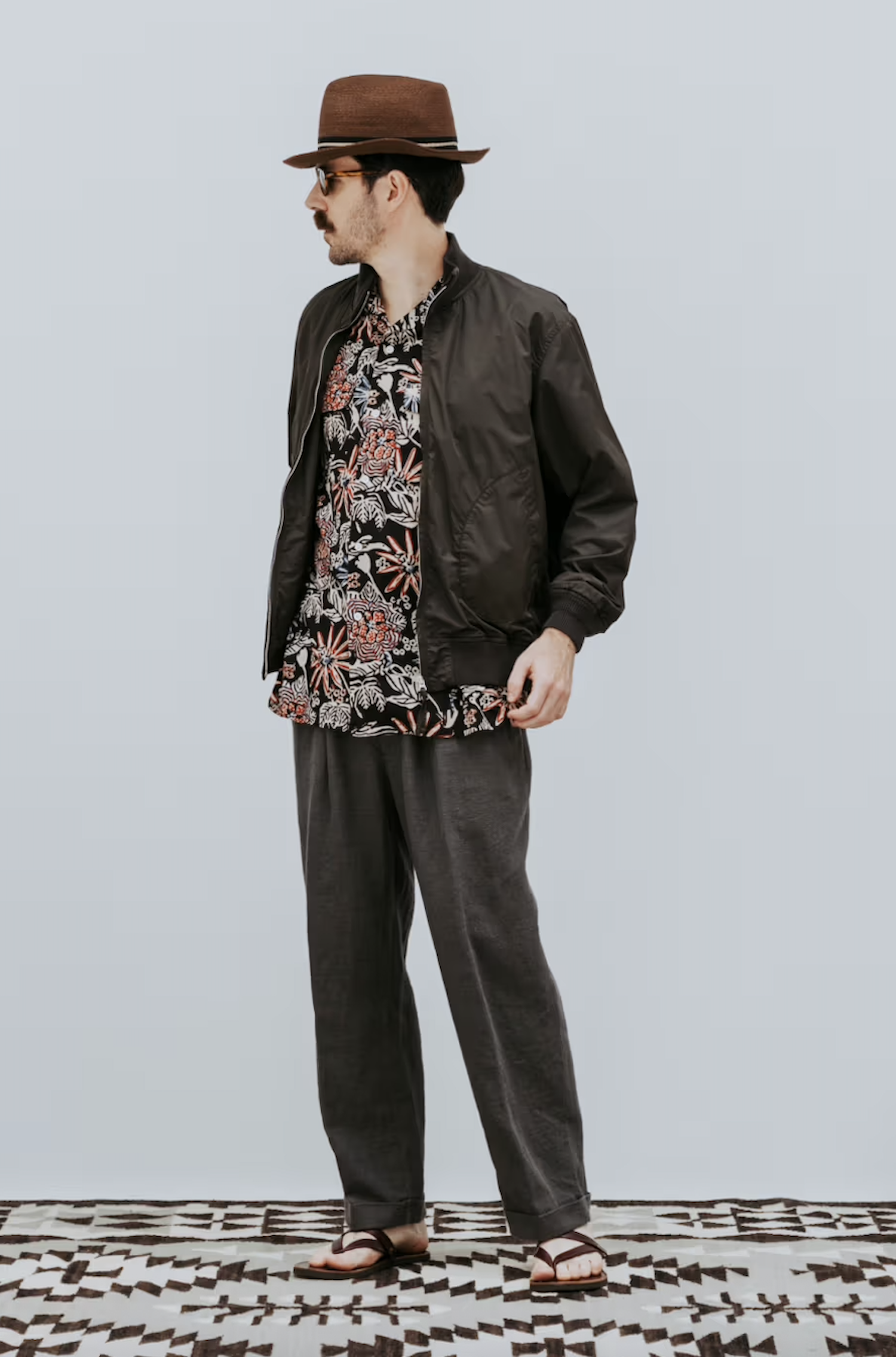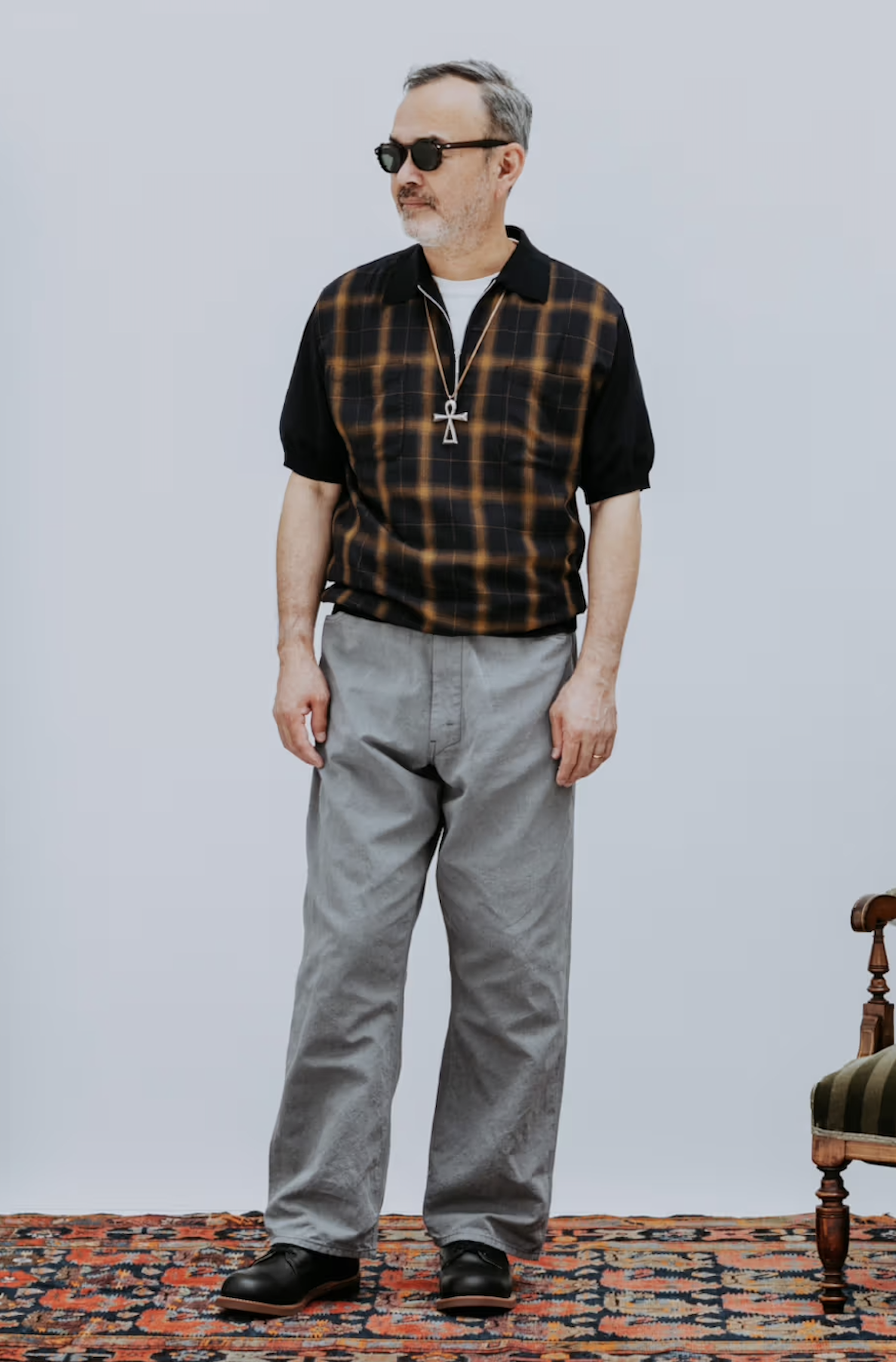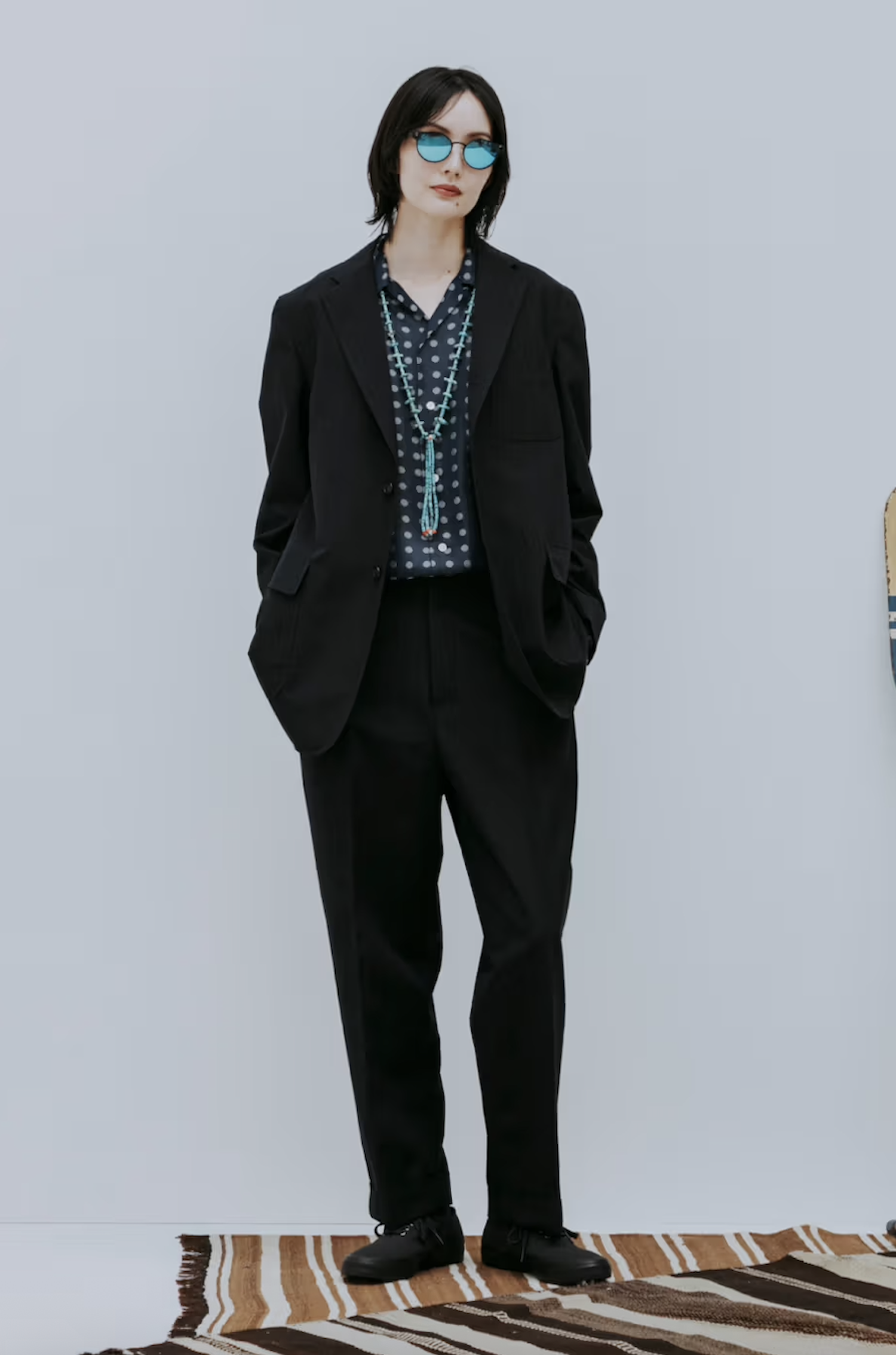 Standout pieces within the collection include triacetate souvenir jackets featuring Yonezawa-ori jacquard patterns, alongside pigment-dyed jackets designed to evoke the worn-in charm of 1950s vintage outerwear. Together, they create a wardrobe that feels both nostalgic and practical for modern wear.