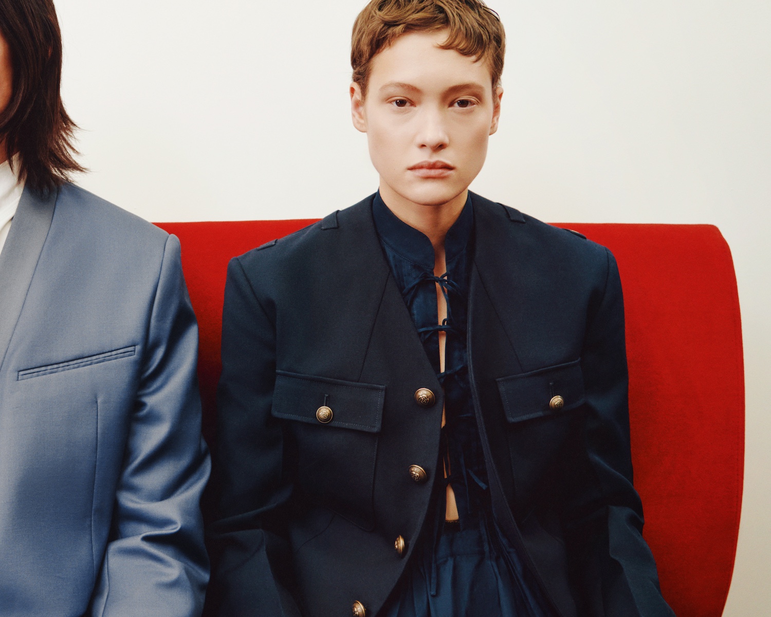 Within the campaifn, tailoring takes centre stage. Nigo reworks the House’s kimono-inspired codes into modern silhouettes, finished with satin and velvet shawl lapels across both menswear and womenswear.