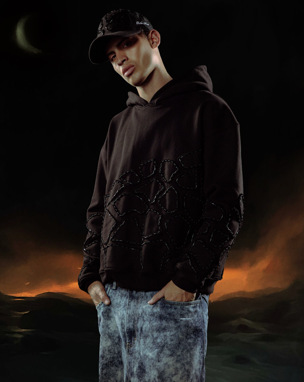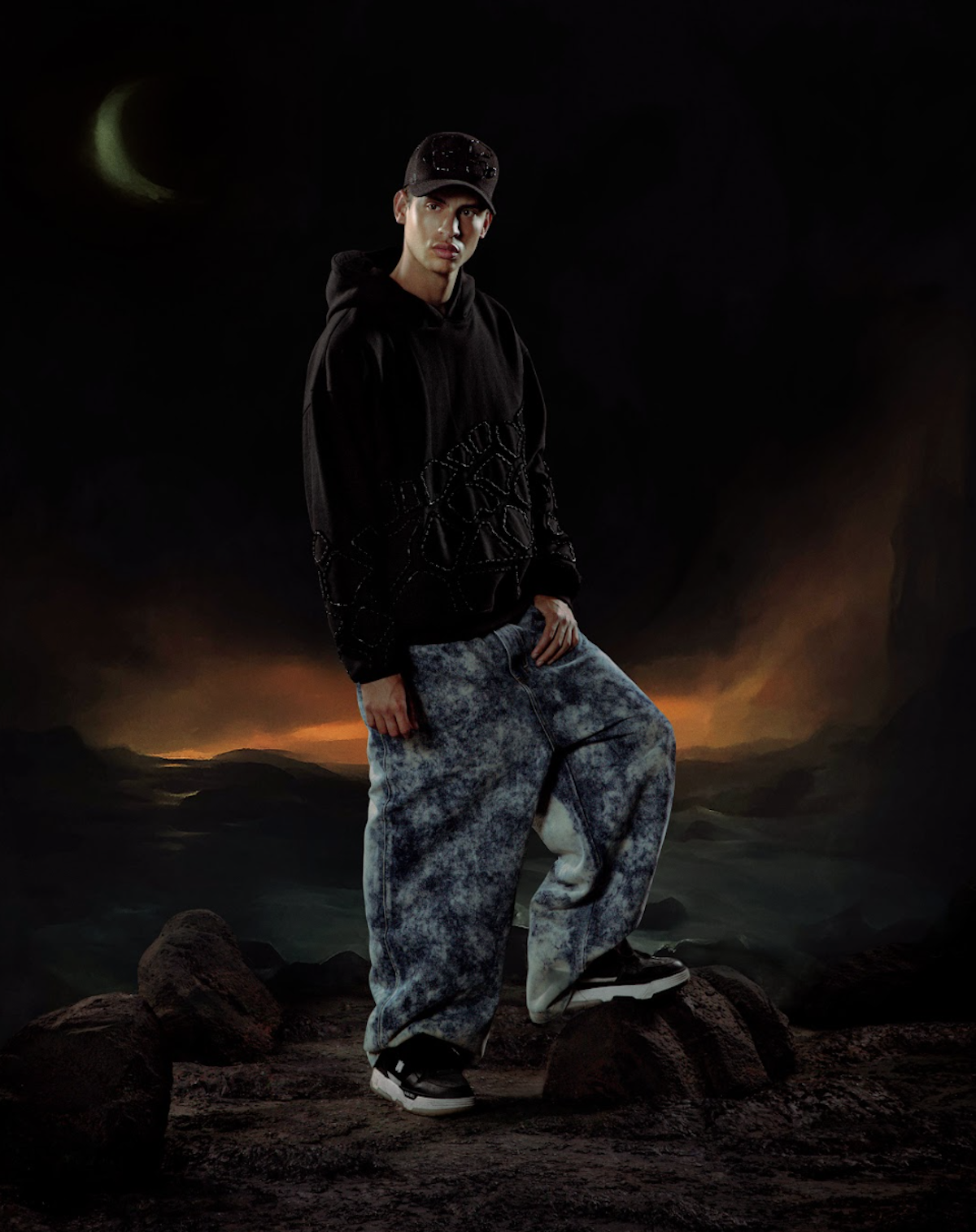 The brand’s AW25 balances structured tailoring with raw, tactile finishes, blending Peruvian fibres, natural dyes, and elevated denim. Sculptural techniques, including intricate 3D embroidery and shadowed prints, introduce depth and movement, blurring the boundary between fashion design and artistic form.