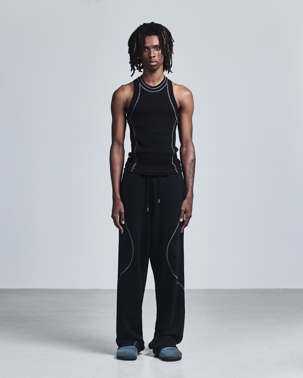 Saul Nash has built his brand on the language of movement. Since emerging from London’s dance and performance communities, the designer has consistently challenged the boundaries of menswear, redefining masculinity through clothes that flex, stretch, and respond to the body in motion. His collections exist at the intersection of sportswear, tailoring, and technical utility, often worn by dancers as naturally as they are by the street with garments designed not just to be seen, but to be felt. At its core, the Saul Nash universe is about freedom of expression, vulnerability, and the emotional intelligence of dress.