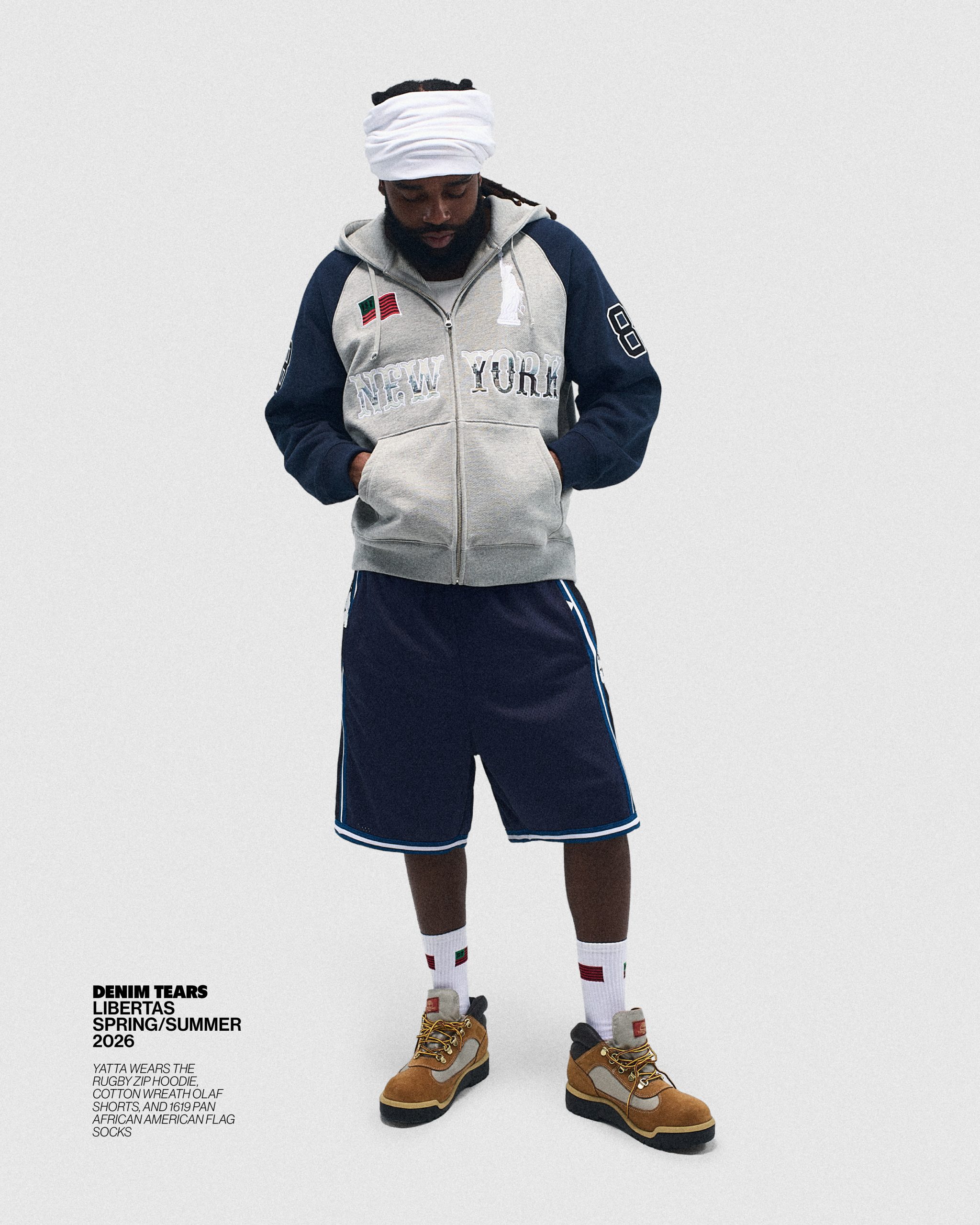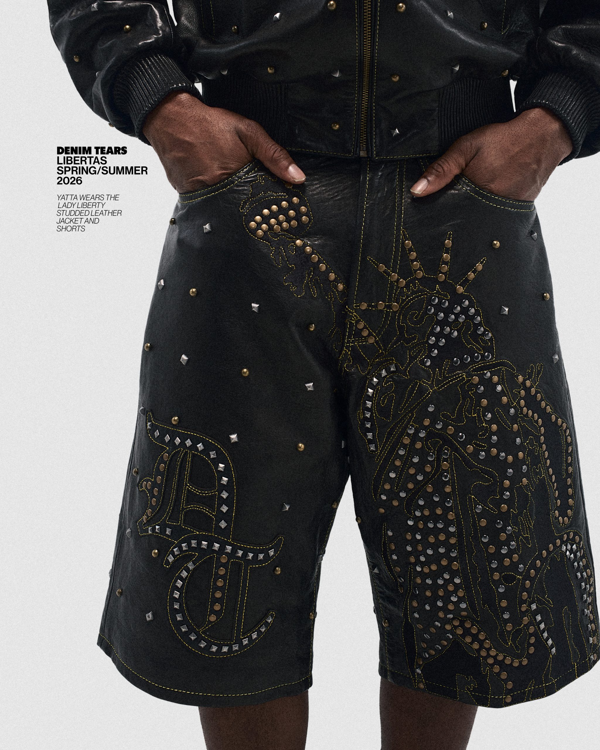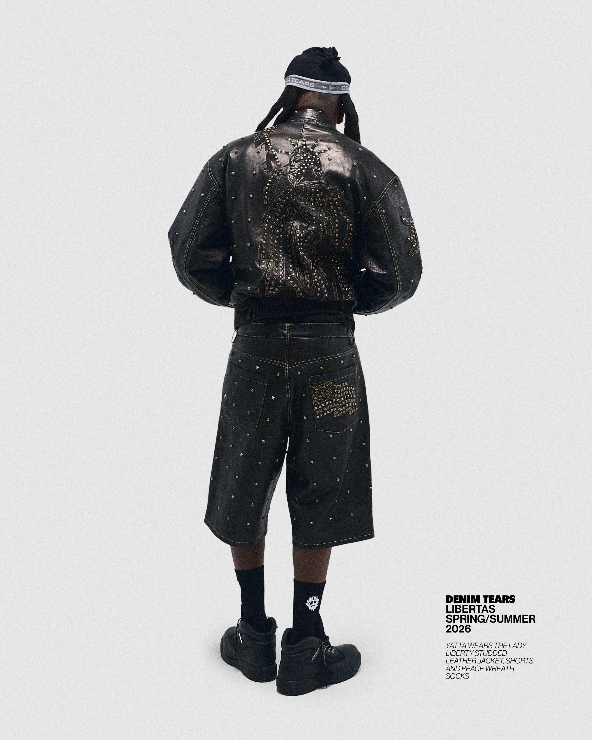 Framed through Tremaine Emory’s research-heavy lens, the collection revisits the monument’s original symbolism, zooming in on the broken chains resting at Lady Liberty’s feet, a detail meant to mark the end of slavery and one that often goes unnoticed in mainstream readings of the statue.