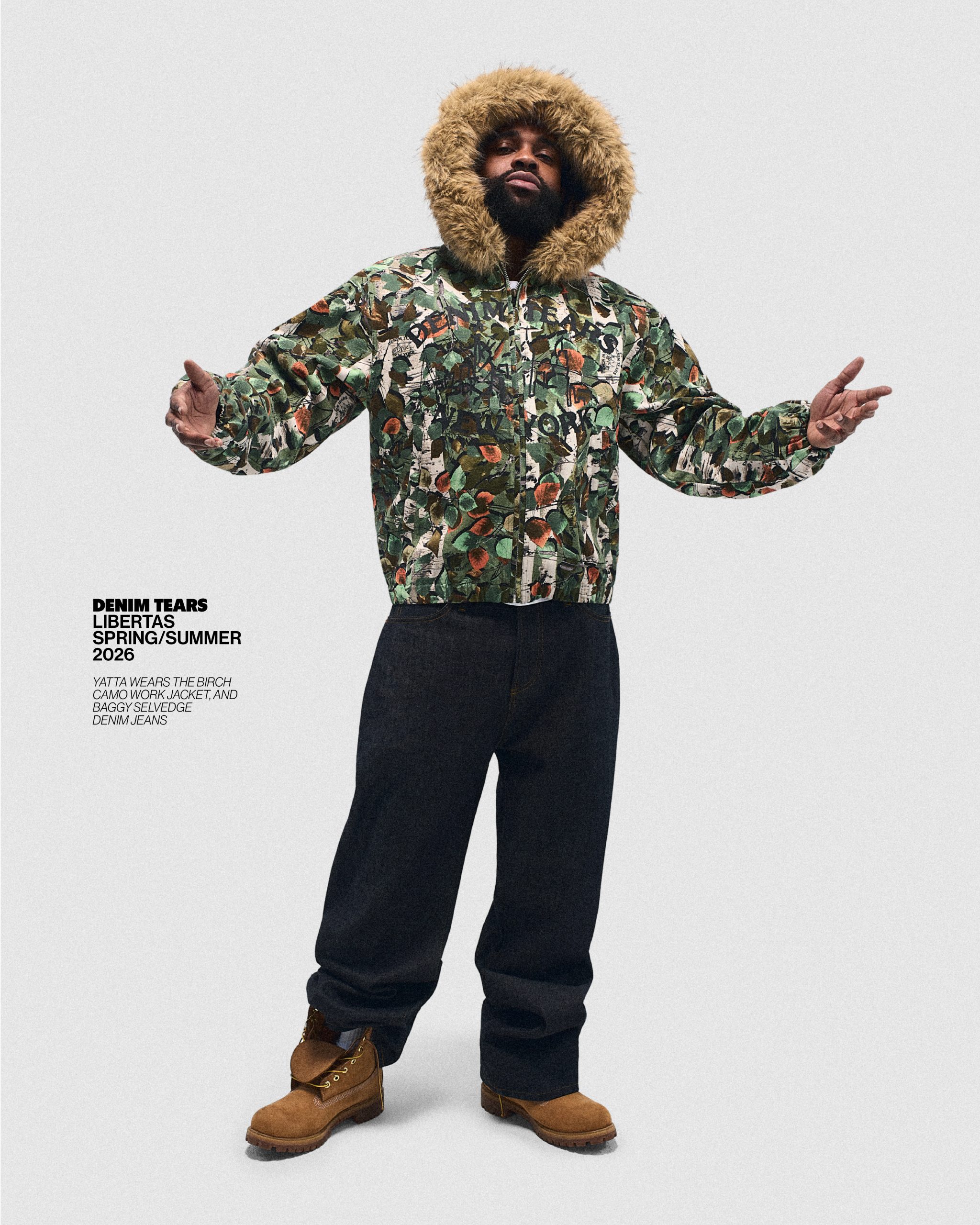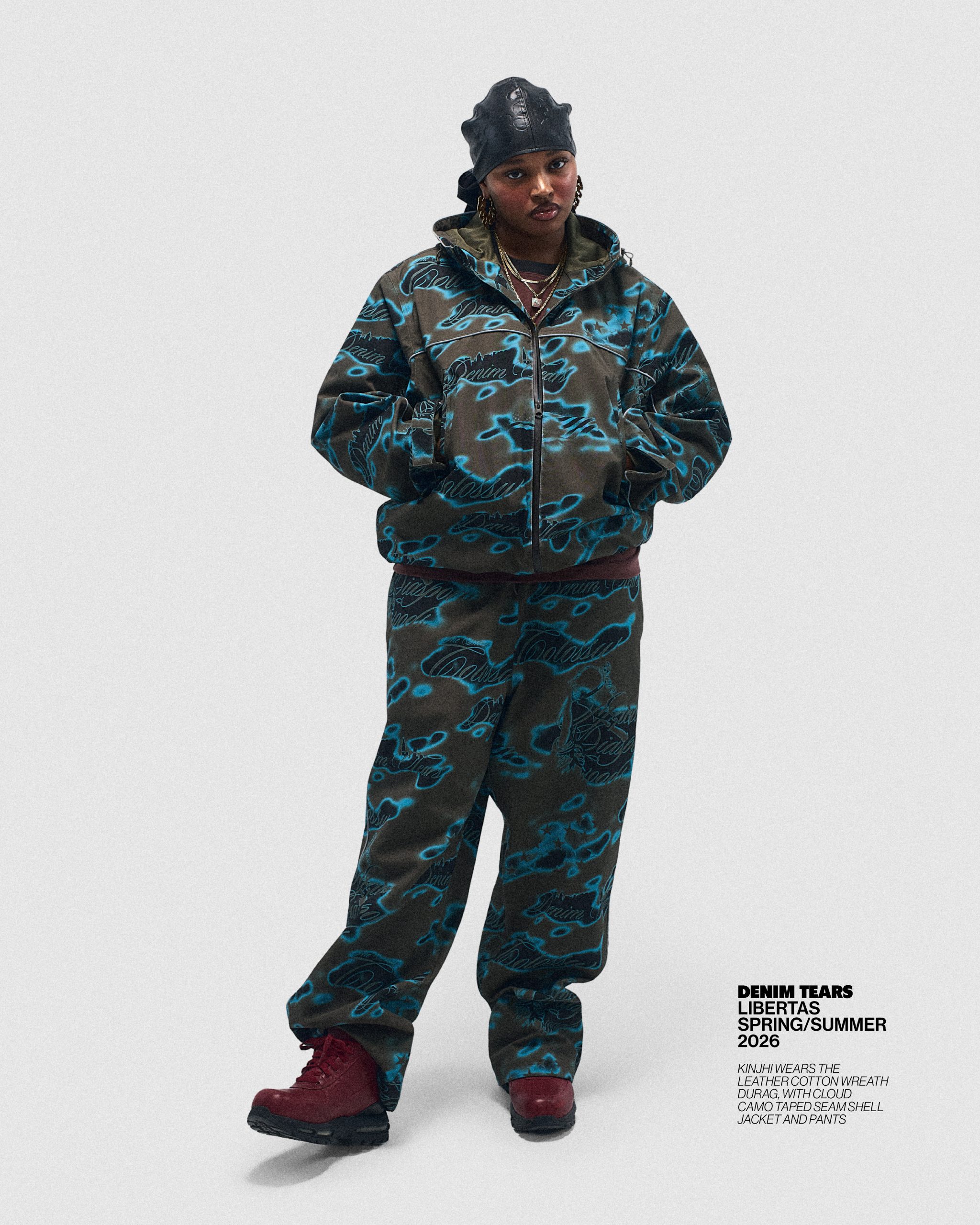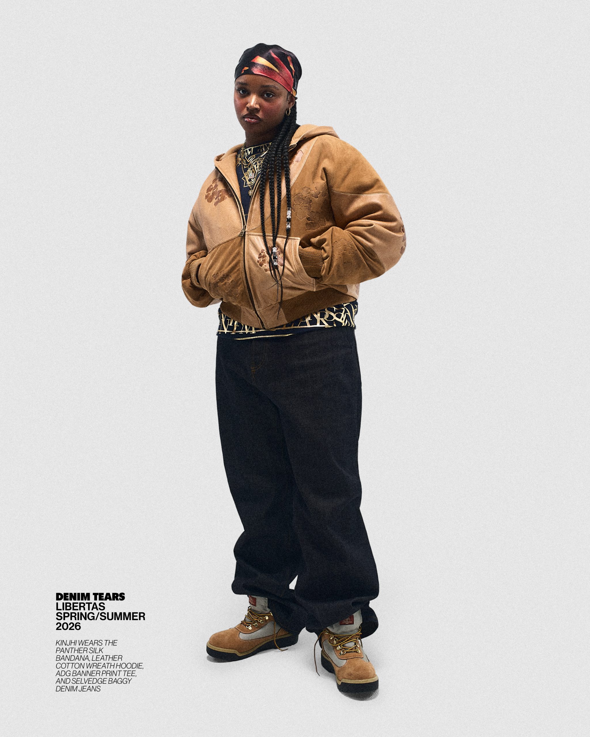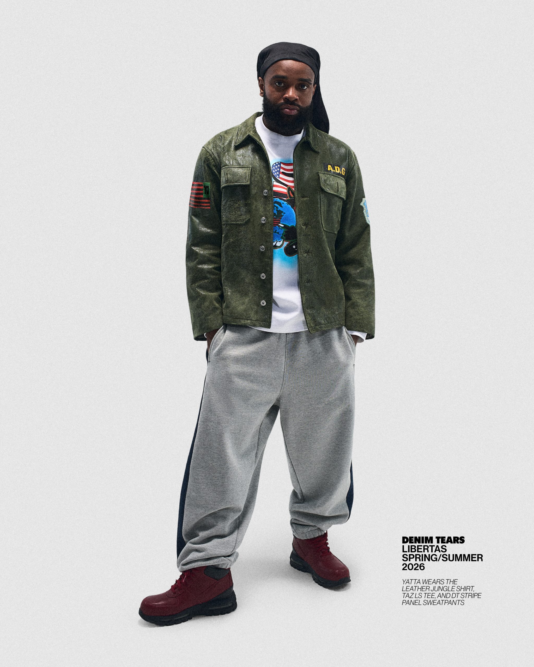 Taking its statement silhouettes to a new level for Spring/Summer 2026, the relaxed shapes arrive sharpened through premium fabrication and layered storytelling. Leather outerwear stamped with Liberty crests, studded sets, and elevated Ranger staples lead the charge, while symbolic chain graphics and sculptural embellishments echo throughout. Elsewhere, Denim Tears continues expanding its visual language, revisiting the Cotton Wreath through oxidised hardware, bold striping, florals, and graphic treatments, all grounded by baggy selvedge denim and washed seasonal fades making it the coolest wardrobe you can ask for.