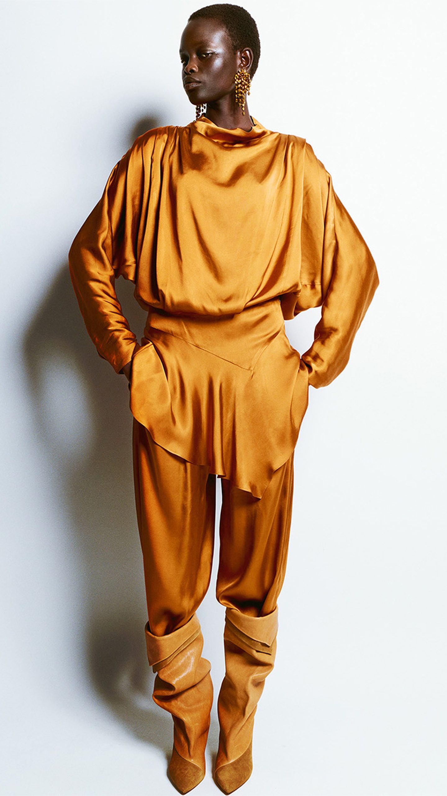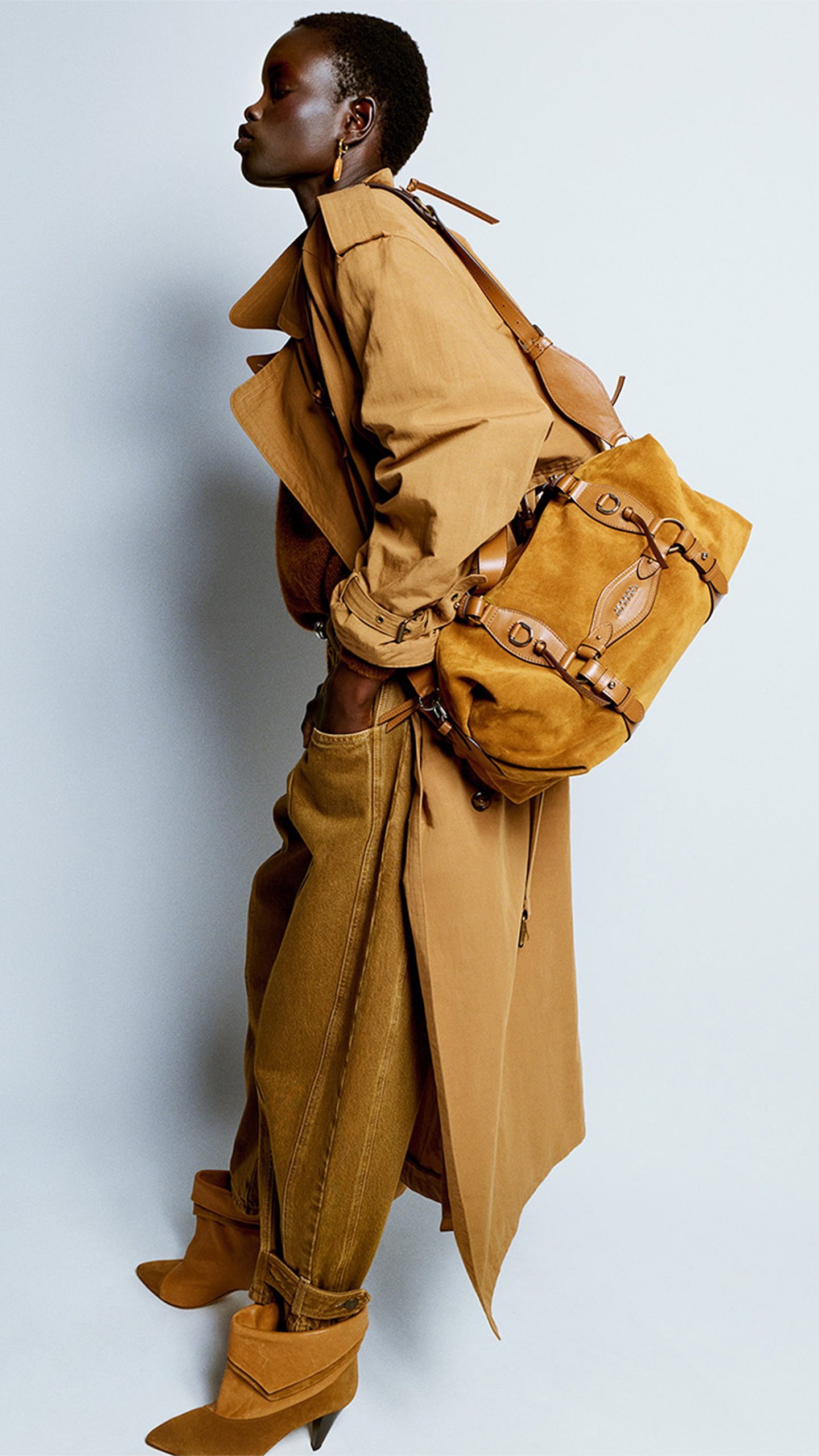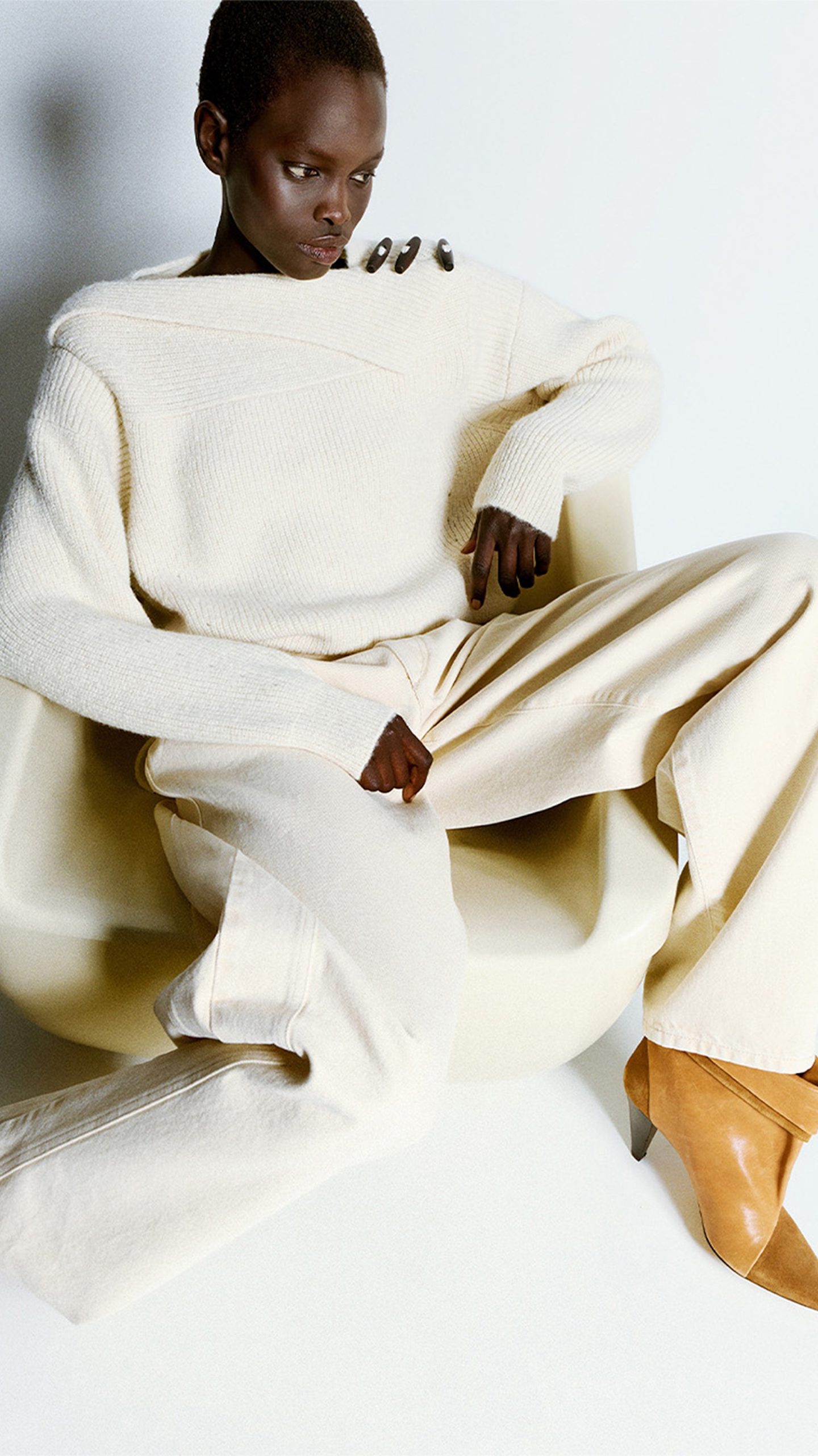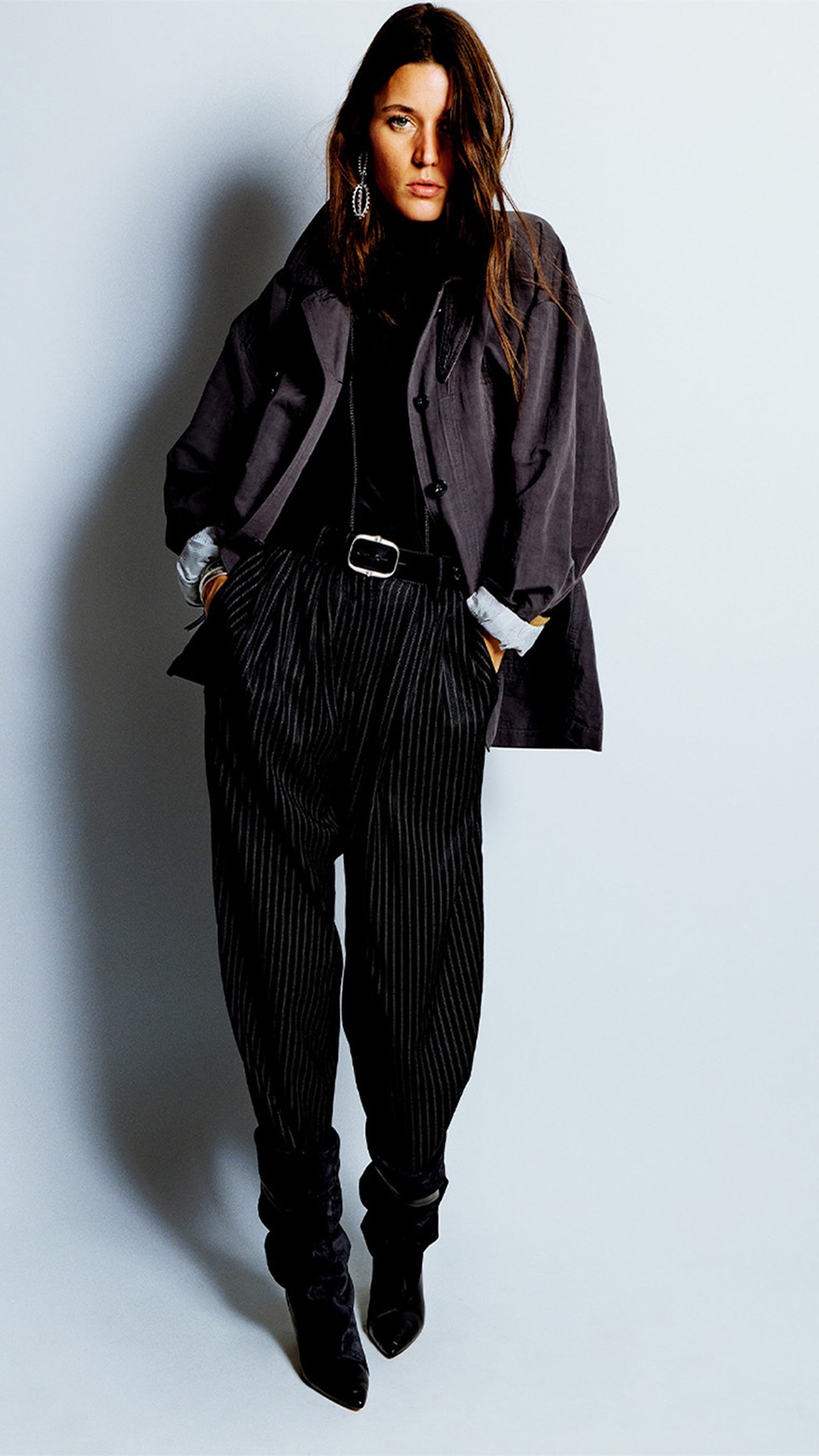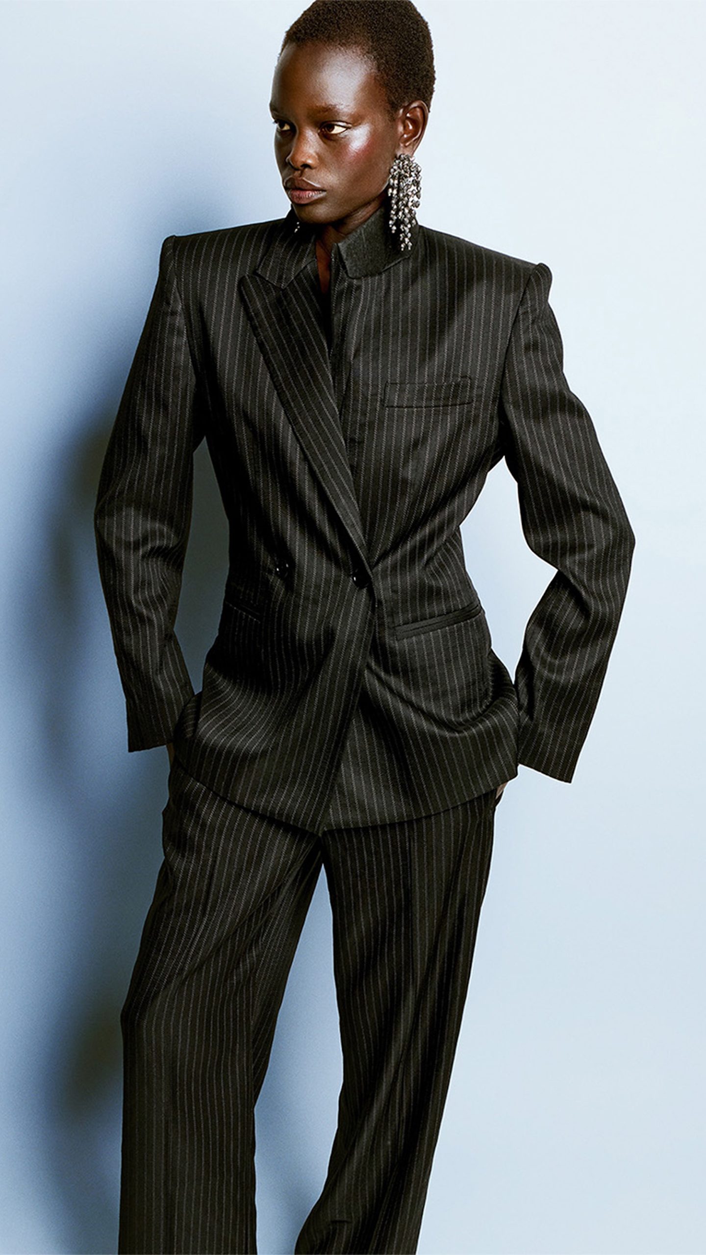 Structured 80s-inspired shoulders remain a key feature, bringing definition to tailoring and outerwear. However, proportions are leaner and more fluid, with capri trousers introduced as a standout piece, subtly shifting the line of the leg and offering a more restrained take on modern allure.