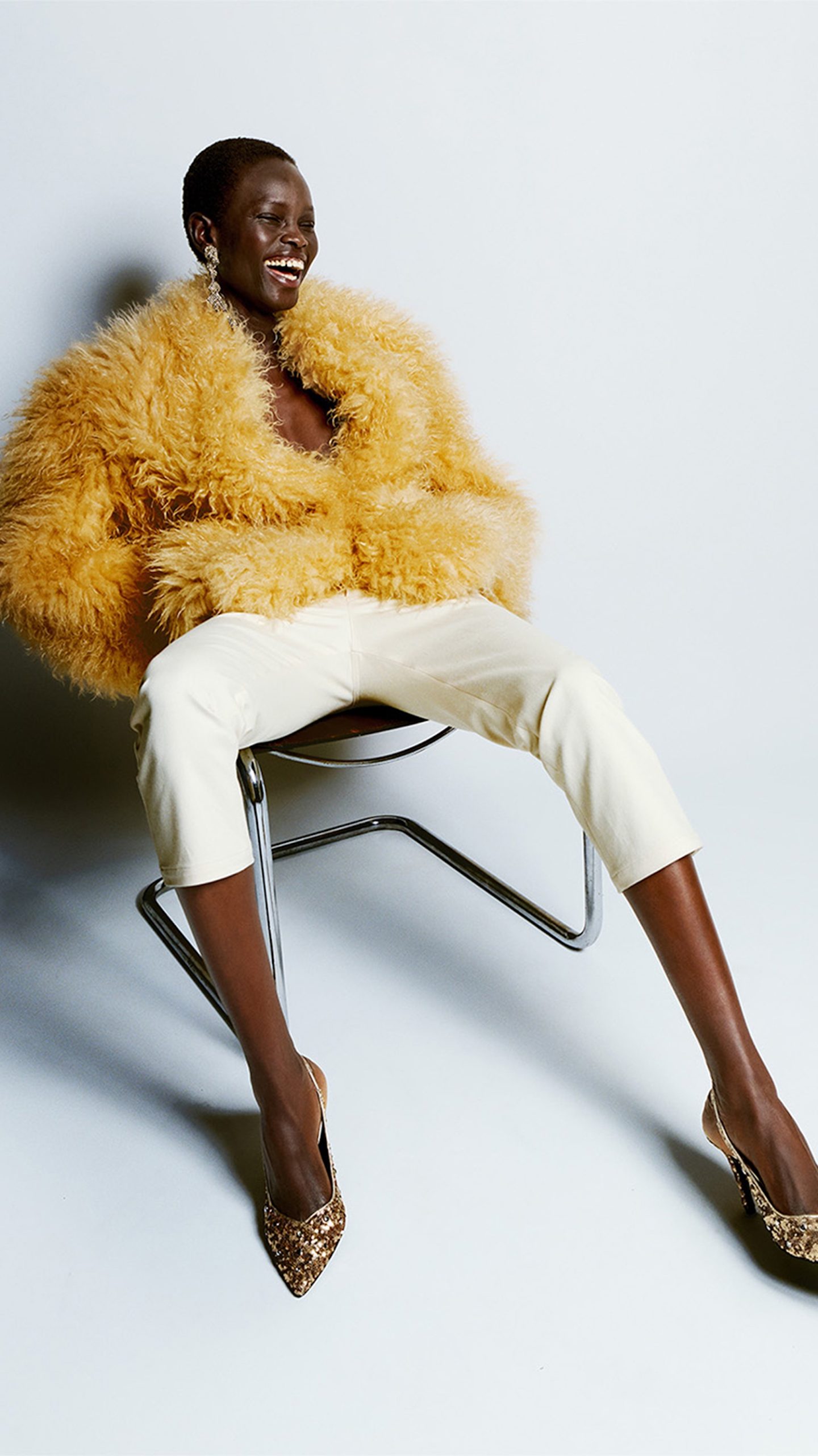 References to 90s minimalism run throughout, seen in slip dresses and silk blouses that move effortlessly with the body. A boxy collared faux-fur jacket and silver kitten heels complete the looks, delivering a collection that feels both polished and relaxed, true to the Isabel Marant ethos.
