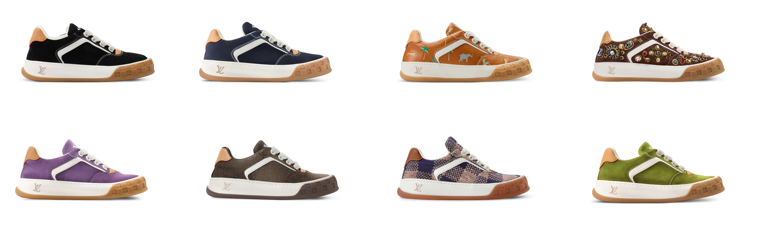 Where it gets interesting is fabrication. Think worn-in denim, colourful calf suede, woven Damier, plaid canvas, gem-embellished goat leather, embroidered finishes and Monogram stencil-rubbed treatments. It’s skate nostalgia, elevated – without losing the attitude.