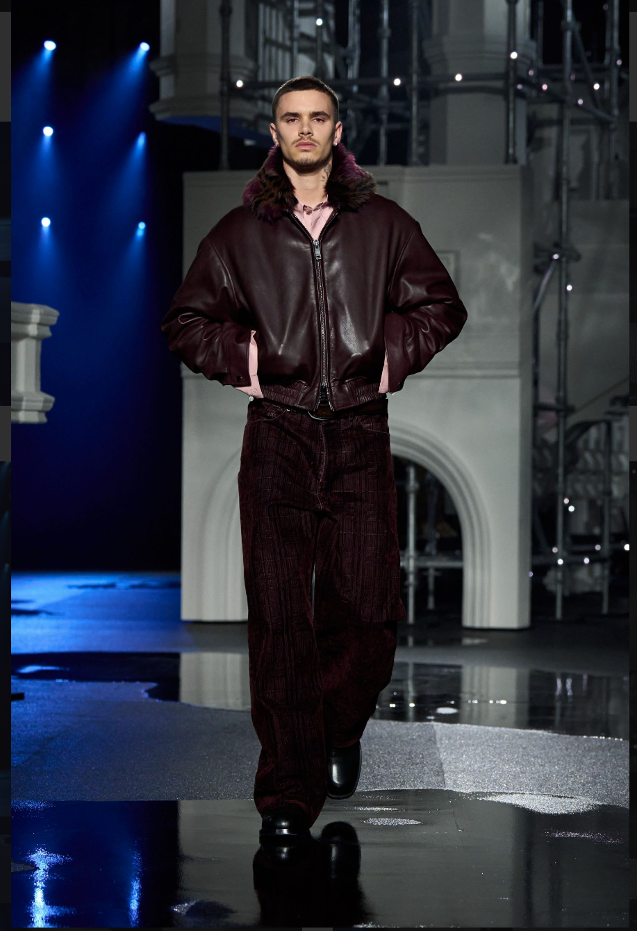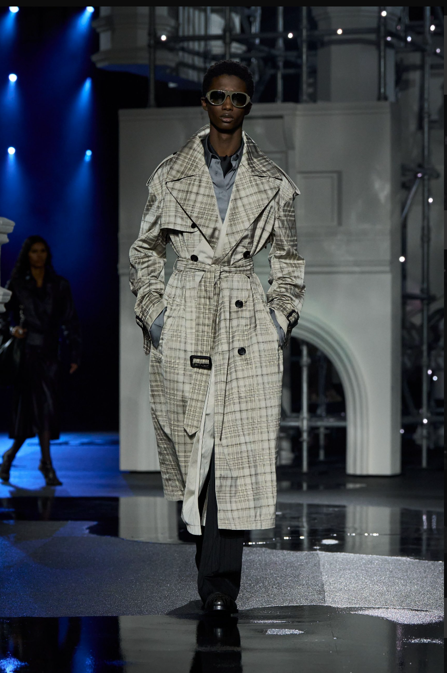 Burberry is “so back.” Daniel Lee pivoted from countryside romanticism to nocturnal London, staging the show against a high-gloss Tower Bridge set that felt cinematic but self-aware. FW26 leaned into the codes people actually associate with the house: trench coats recalibrated for evening, puffer jackets with presence, sharp bombers, checked fleece layered with intent. Less heritage cosplay, more lived-in London.