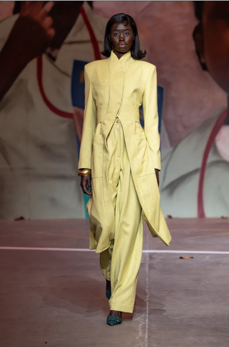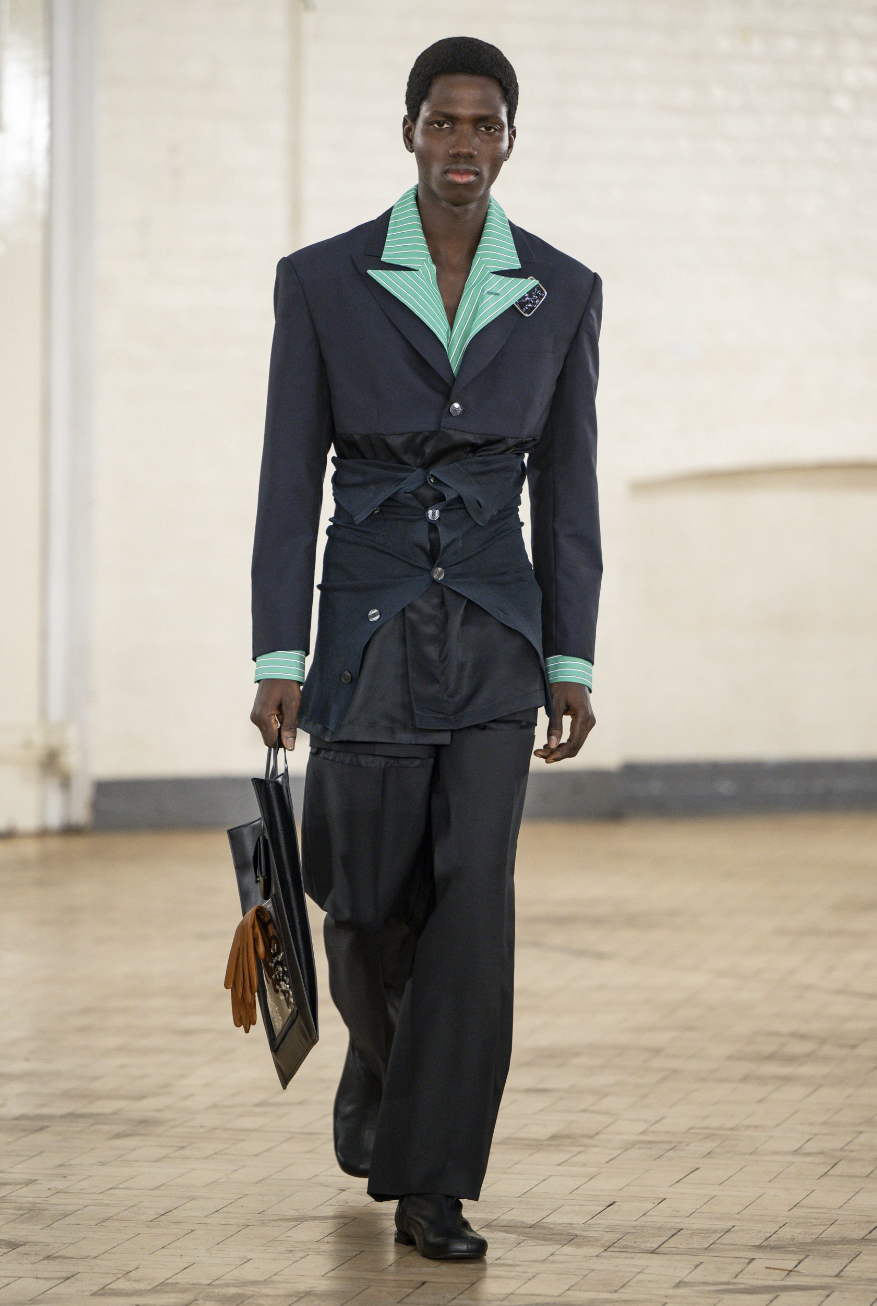 Coker’s strength is discipline. Cuts are clear, proportions restrained. Sentiment is held in place by structure. Softness appears – in a blouse, a sleeve curve – but is protected. The tension? Social mobility: what you carry when you make it out. Clothes built for rooms not designed for you.
