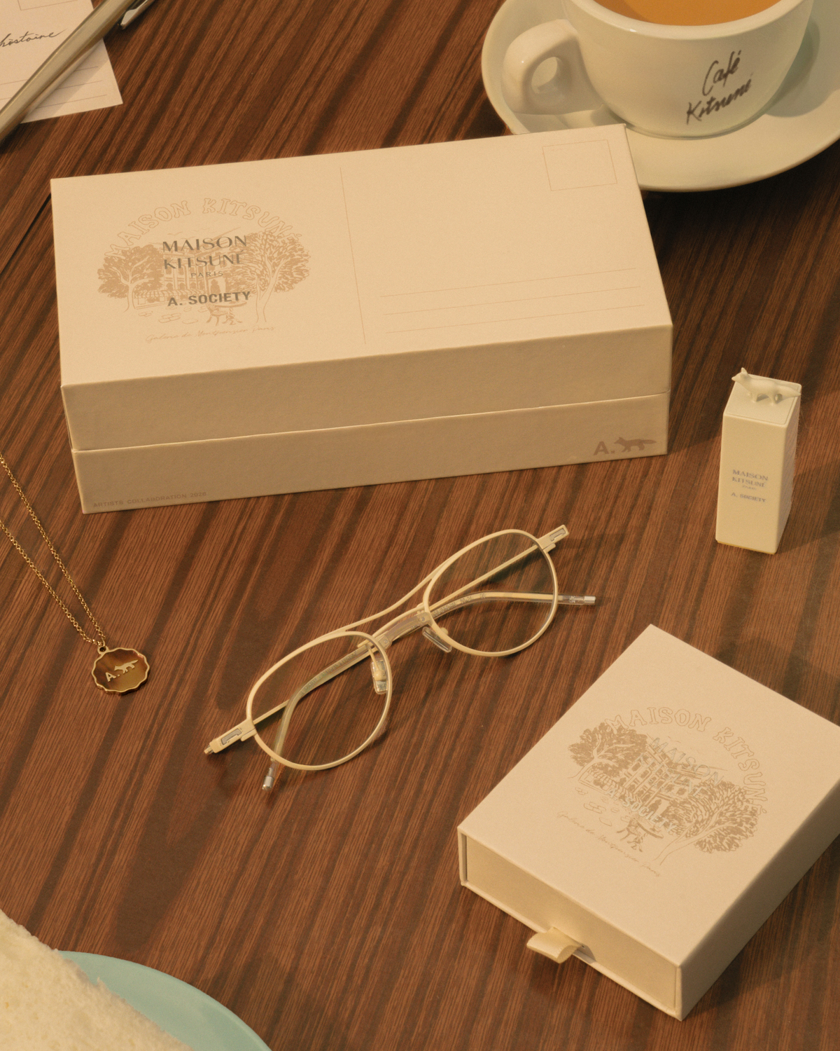A. SOCIETY collaborates with Maison Kitsuné in an exclusive eyewear capsule for Spring 2026. Bringing together the cities of Hong Kong, Paris, and Tokyo, the partnership demonstrates a shared vision of accessible luxury.