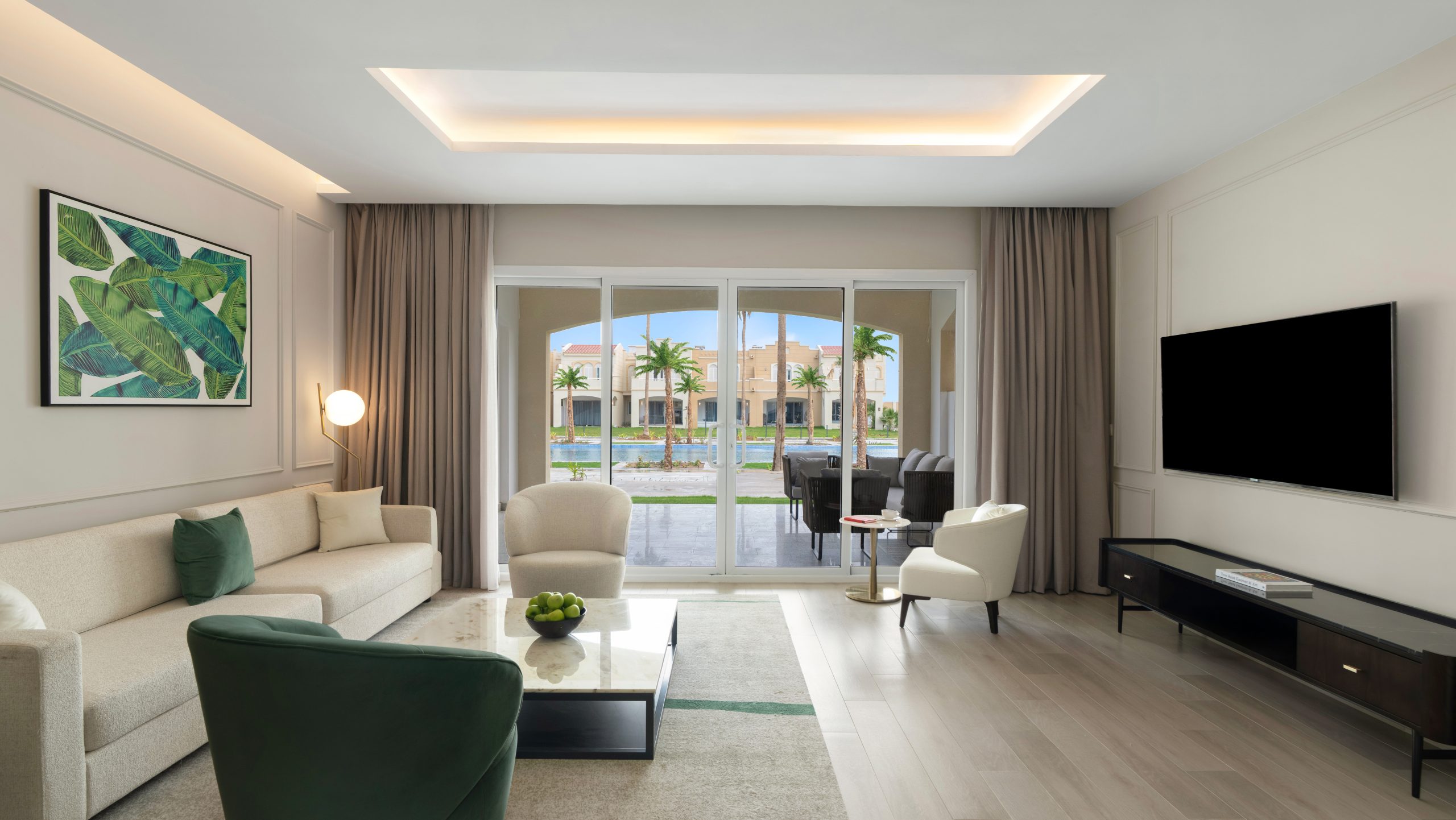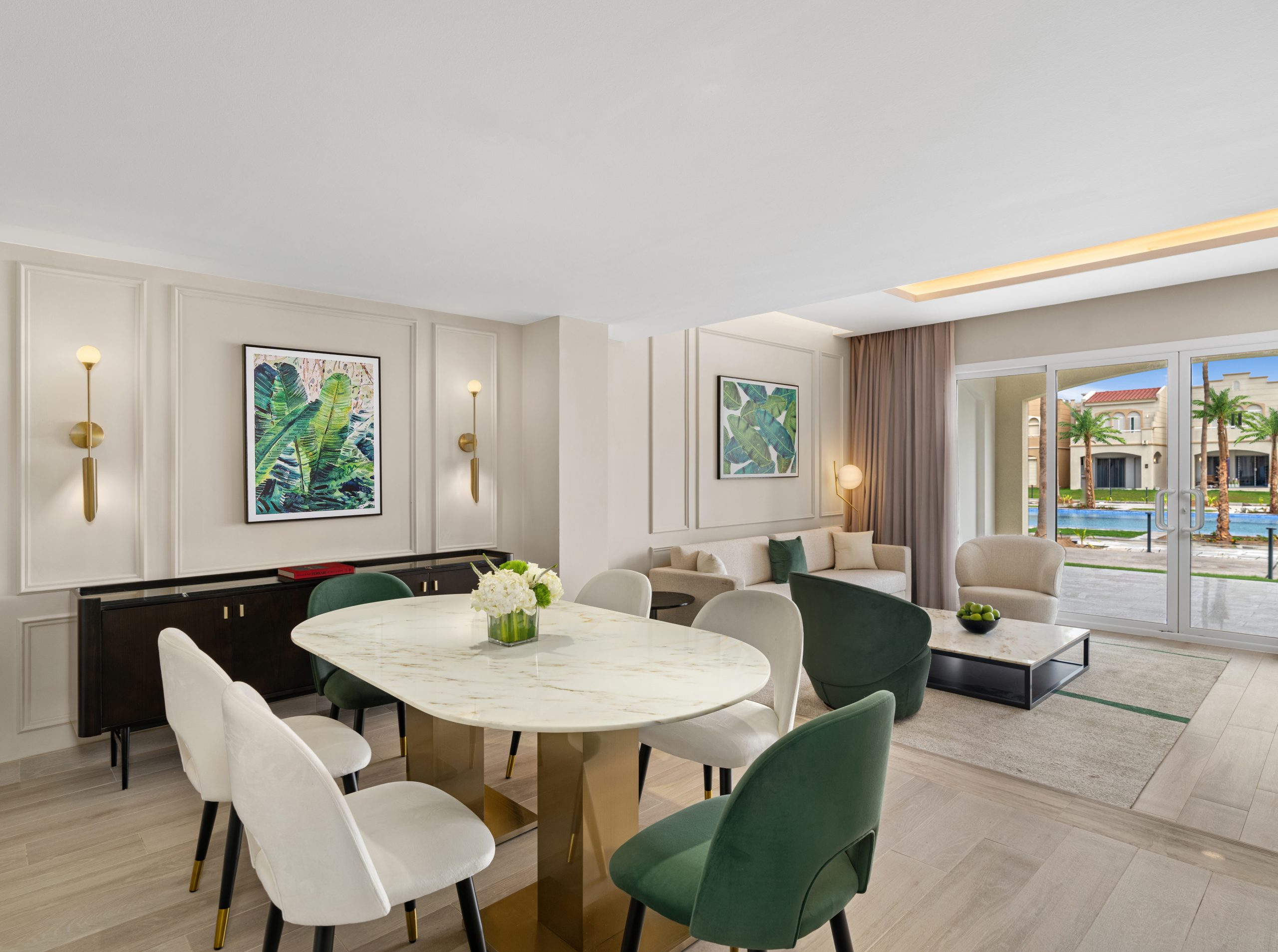 Suites host larger living areas with balconies, while the resort’s villas offer the most exclusive stay. Many include private pools, multiple bedrooms and generous indoor-outdoor spaces, making them ideal for larger groups or extended stays.