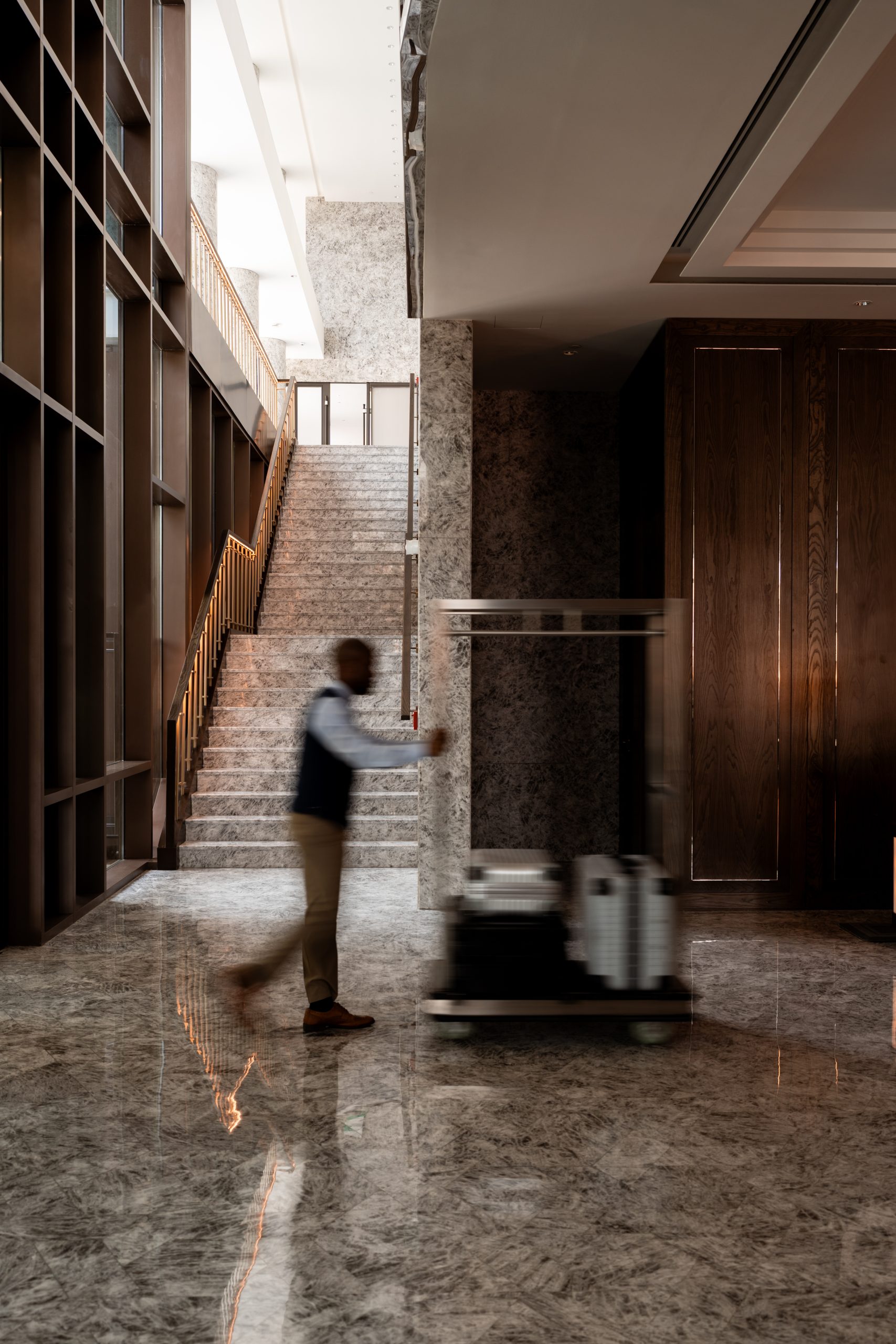 Situated on the North Corniche, the hotel forms part of a growing high-rise cluster along this stretch of coast. The lobby is airy, light-filled and grand in typical Shangri-La style. Known for merging subtle touches of Chinese heritage and hostility with local culture across their locations, Arabian culture and local references are evident from the moment you enter. Marble floors sit beneath dark lacquered wood panelled walls, while decorative features are symbolic of the Red Sea, inviting elements of the city into the space.