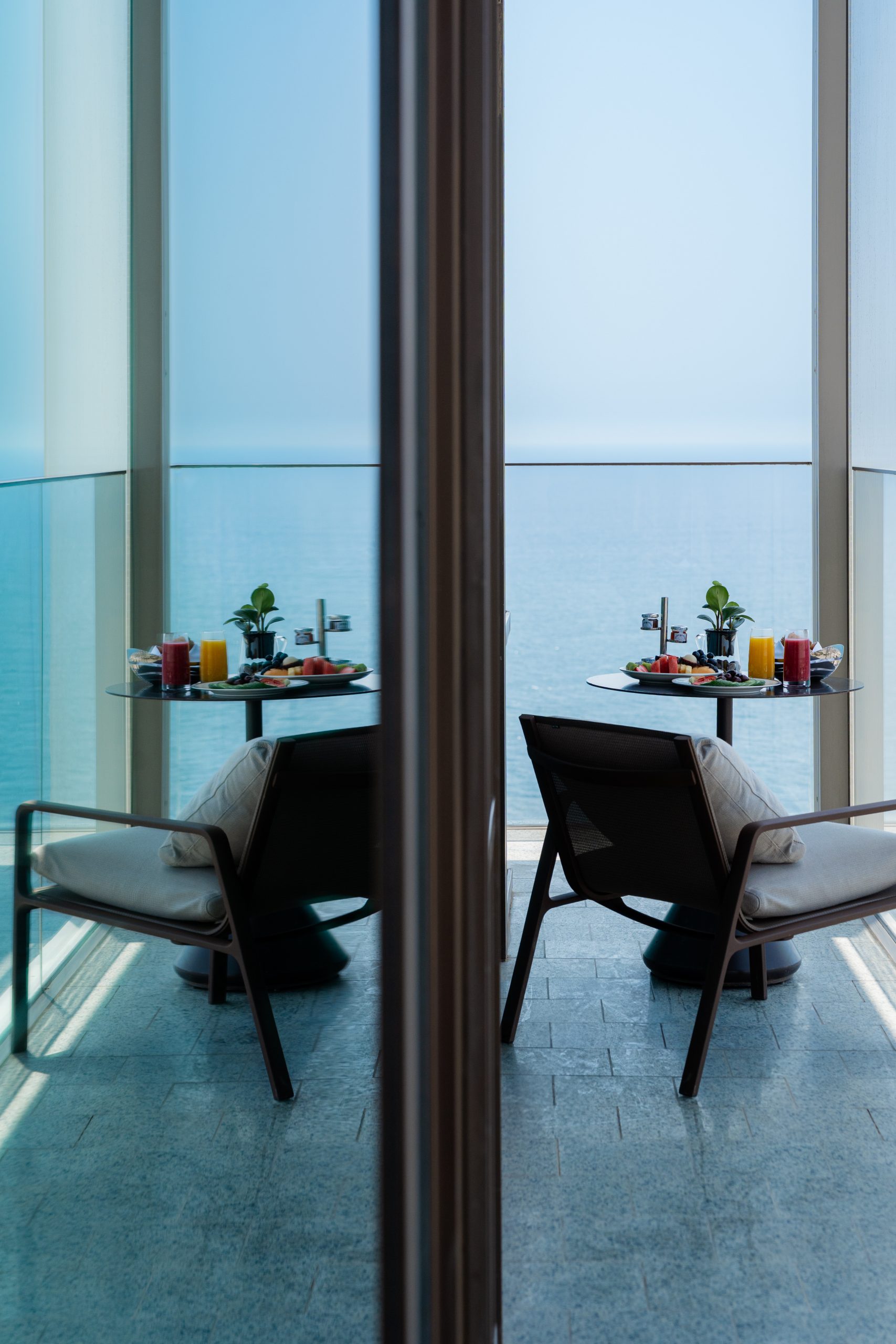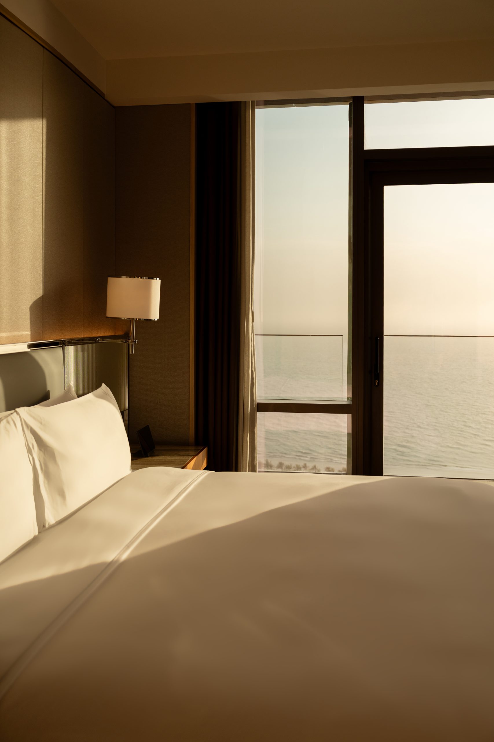 The theme of inviting the outside in continues through to the rooms and suites, where natural light does most of the work in shaping the atmosphere. Floor-to-ceiling windows pull the coastline into the space, especially on higher floors where the seafront feels almost within reach. As the sun sets over the water and the city begins to quieten, it becomes clear why a sea-facing room with a balcony is worth requesting.
