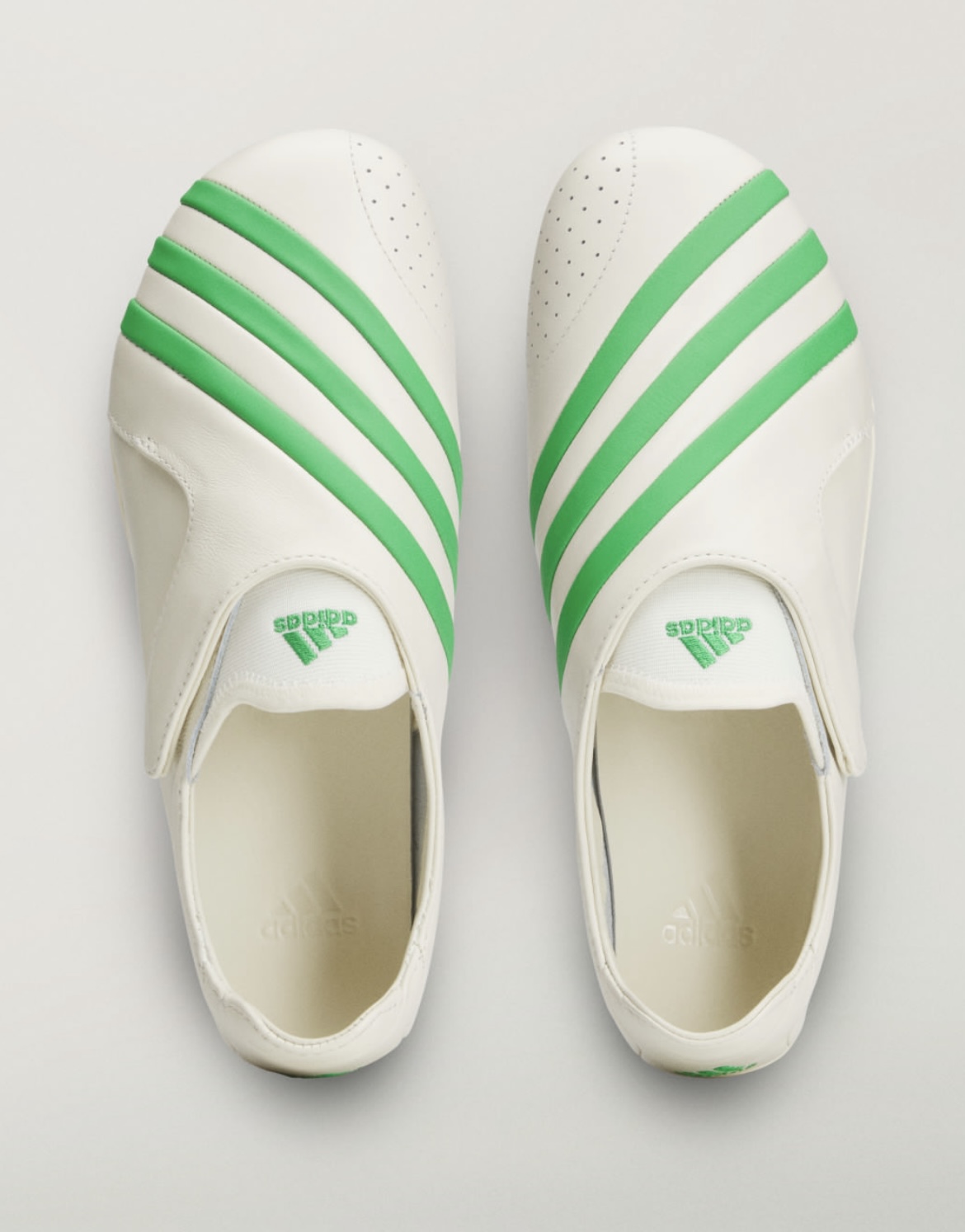 The design is clean, minimal and effortlessly cool, rocking a simple flat strap construction that you could almost mistake for a high-end slipper, but in the best way possible. The exaggerated Three Stripes shroud and strap system across the upper gives it that soccer-inspired edge that makes it feel both laid-back and intentional at the same time.