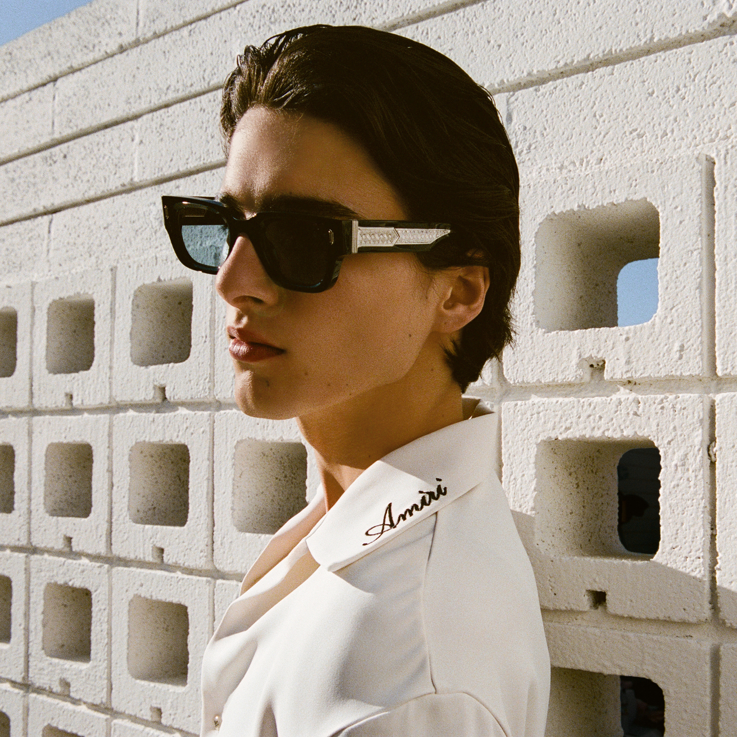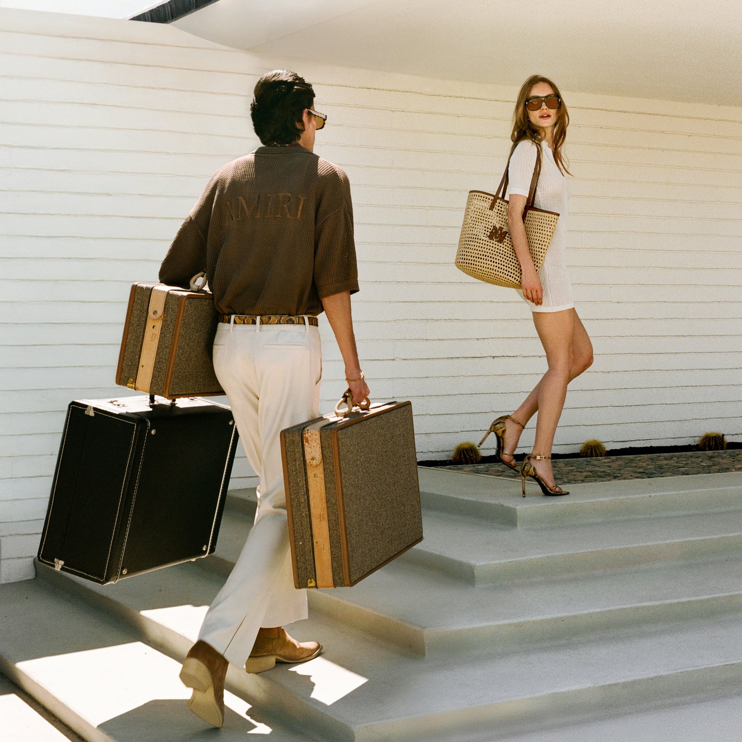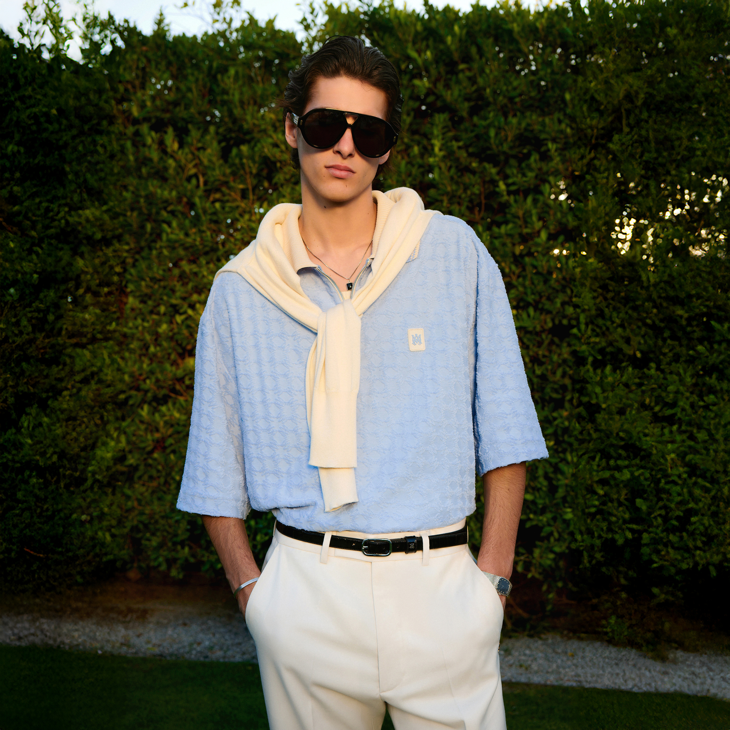 For High Summer 2026, AMIRI moves across the state to the paradise of Palm Springs to capture endless Californian summers. Deep in the Colorado desert, Palm Springs becomes the backdrop for AMIRI’s fantasy world where easy elegance and nature’s pleasures are admired. A sun-bleached colour palette of clear sky blue and sunny yellow are combined with desert-rooted neutrals or rich chocolate, beige, and taupe.