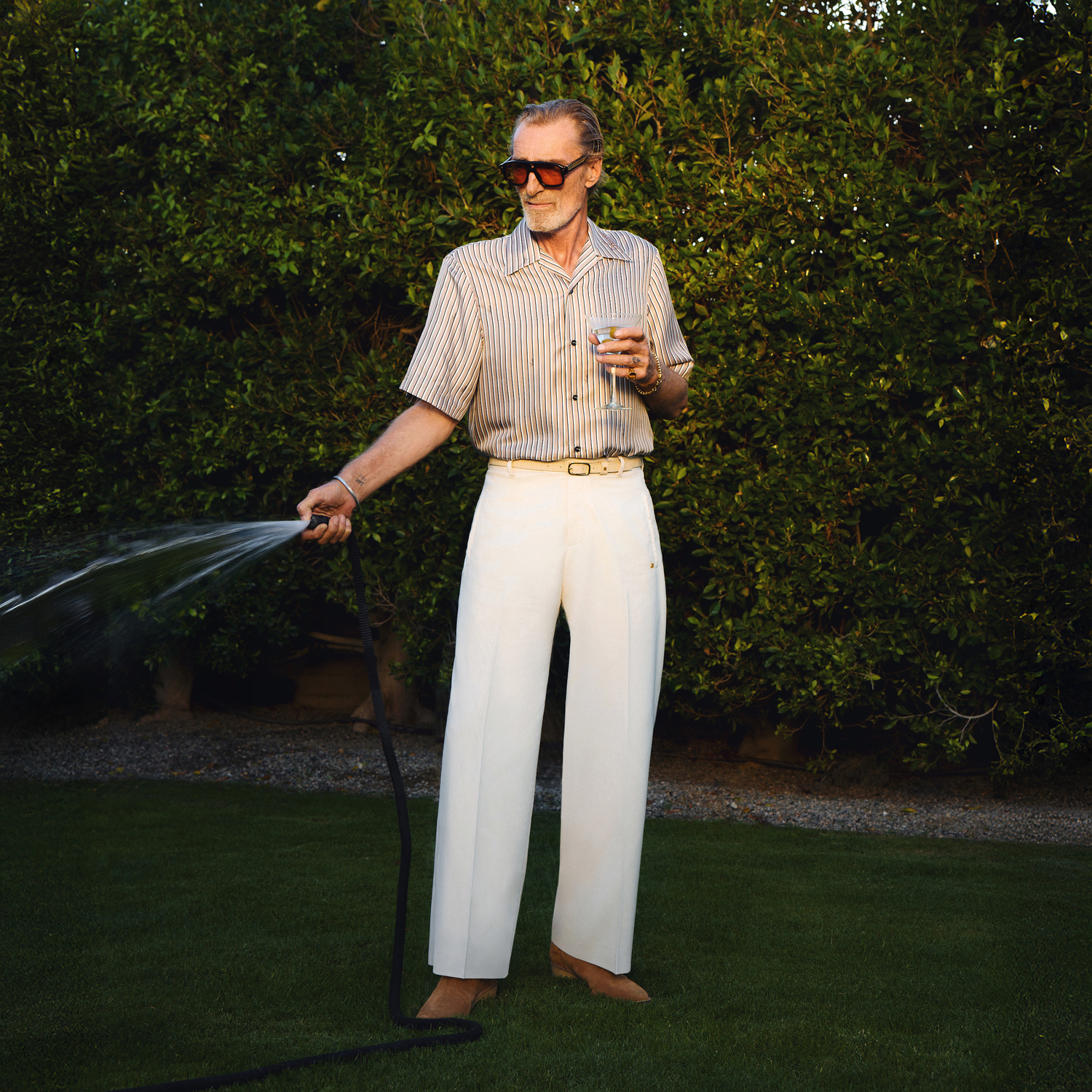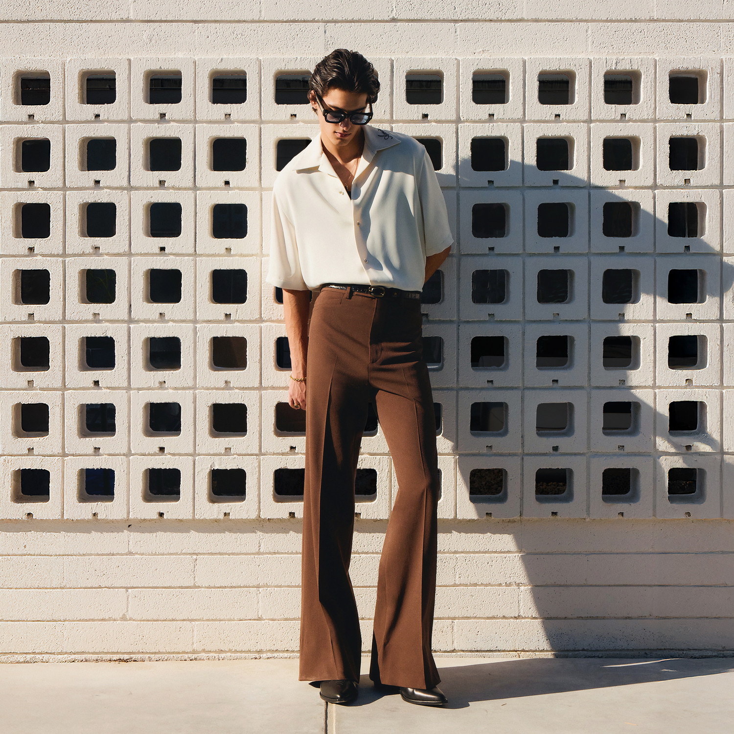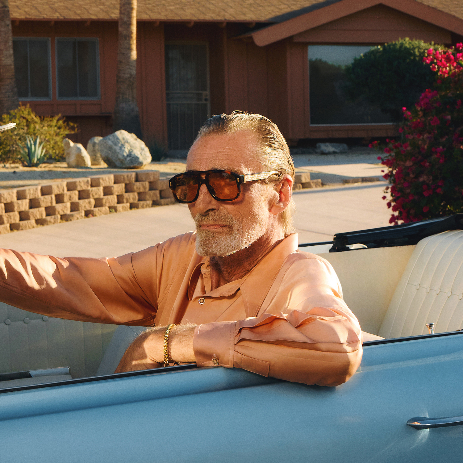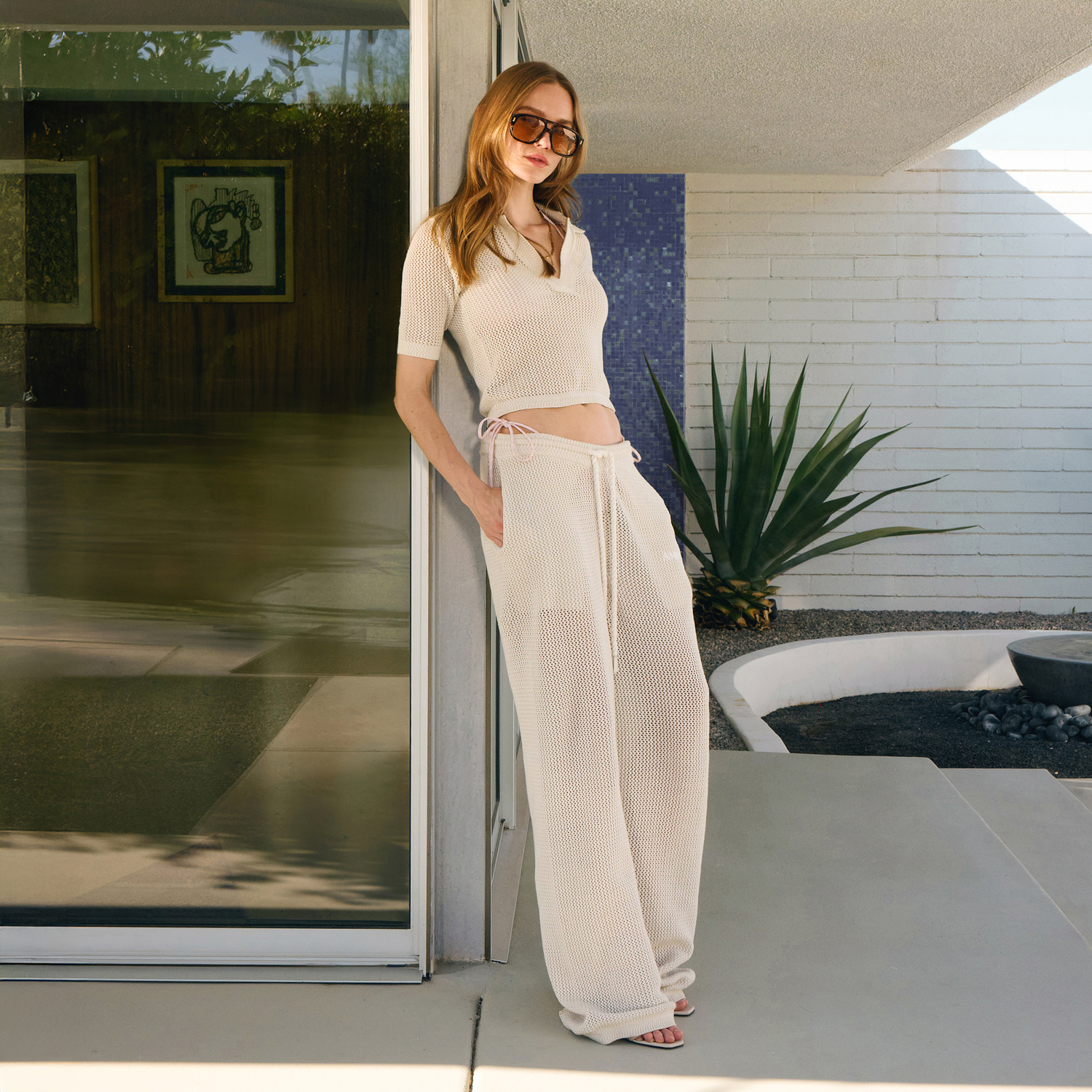 For High Summer 2026, AMIRI moves across the state to the paradise of Palm Springs to capture endless Californian summers. Deep in the Colorado desert, Palm Springs becomes the backdrop for AMIRI’s fantasy world where easy elegance and nature’s pleasures are admired. A sun-bleached colour palette of clear sky blue and sunny yellow are combined with desert-rooted neutrals or rich chocolate, beige, and taupe.