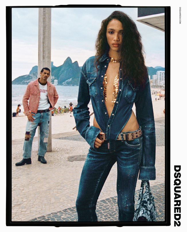 DSquared2’s Spring/Summer 2026 campaign embraces the Brazilian heat and light of Rio de Janeiro. Brazilian photographer Rafael Moura captures the essence of Rio’s atmosphere, from the texture of sand and stone to the emblematic sunrays. This Brazilian presence is embodied by the cast of Mauria Caetano, Jonas Barros, Marlon Teixeira, and Matheus Batista. Styled by Haley Wollens, the vibe is transitional, magnetic, and liberating. Inspired by the warmth of the sun on bare skin, the collection focuses on low-cut denim, cropped shirts, and flowy dresses intended to expose glowing summer skin. As dusk turns into dawn, the silhouettes shift into sensual night-time staples.