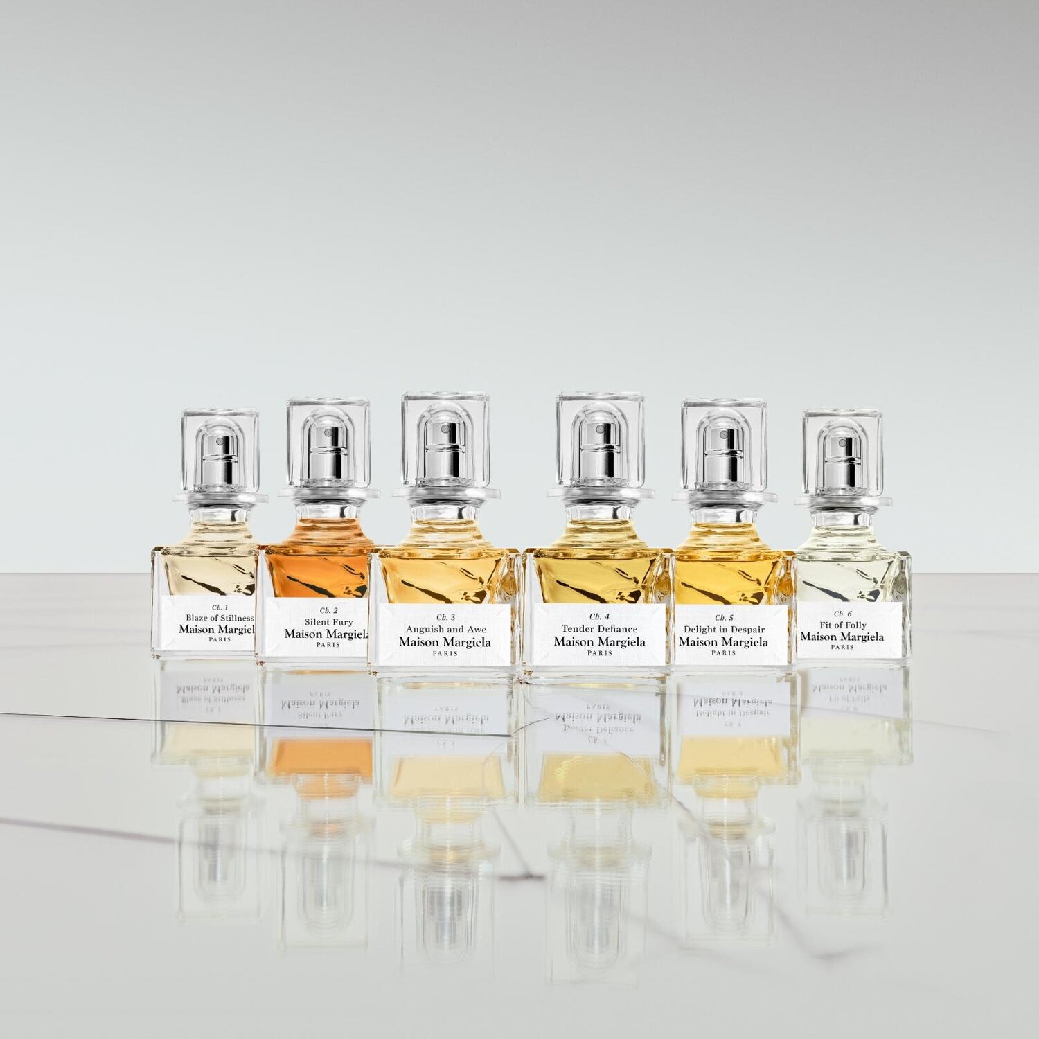Ch5: Delight in Despair engages feelings of lightness, joy, and melancholy, capturing light’s fleeting moments. The sweet saffron cream accord is eventually deepened by a sensual musk overdose. Ch6: Fit of Folly concludes Margiela’s tale. Life’s grand finale is celebrated with an exquisite, ambery patchouli that has an impressive 30% concentration.