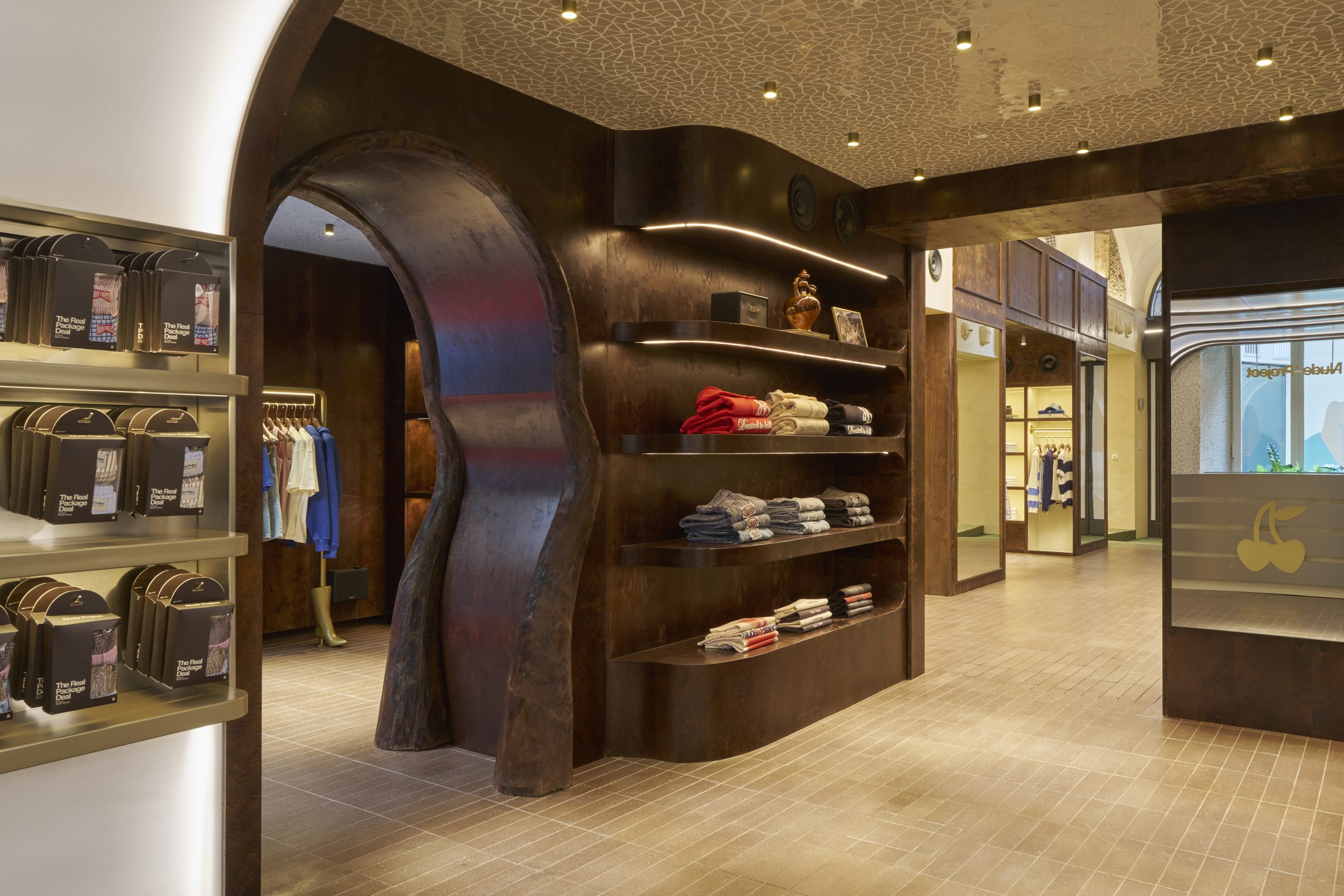 Behind the flagship designed by El Departamento, the space is rooted in something genuinely personal. Bruno Casanovas’ grandparents once transformed a Catalan farmhouse in L’Empordà into an art gallery that Dalí and other artists used to walk through. That story lives in every inch of the ground floor: dark root wood, hand-laid stone, thematic rooms paying tribute to Gaudí, Dalí, and Miró, and a hidden safe somewhere in the store with exclusive product for whoever finds it.