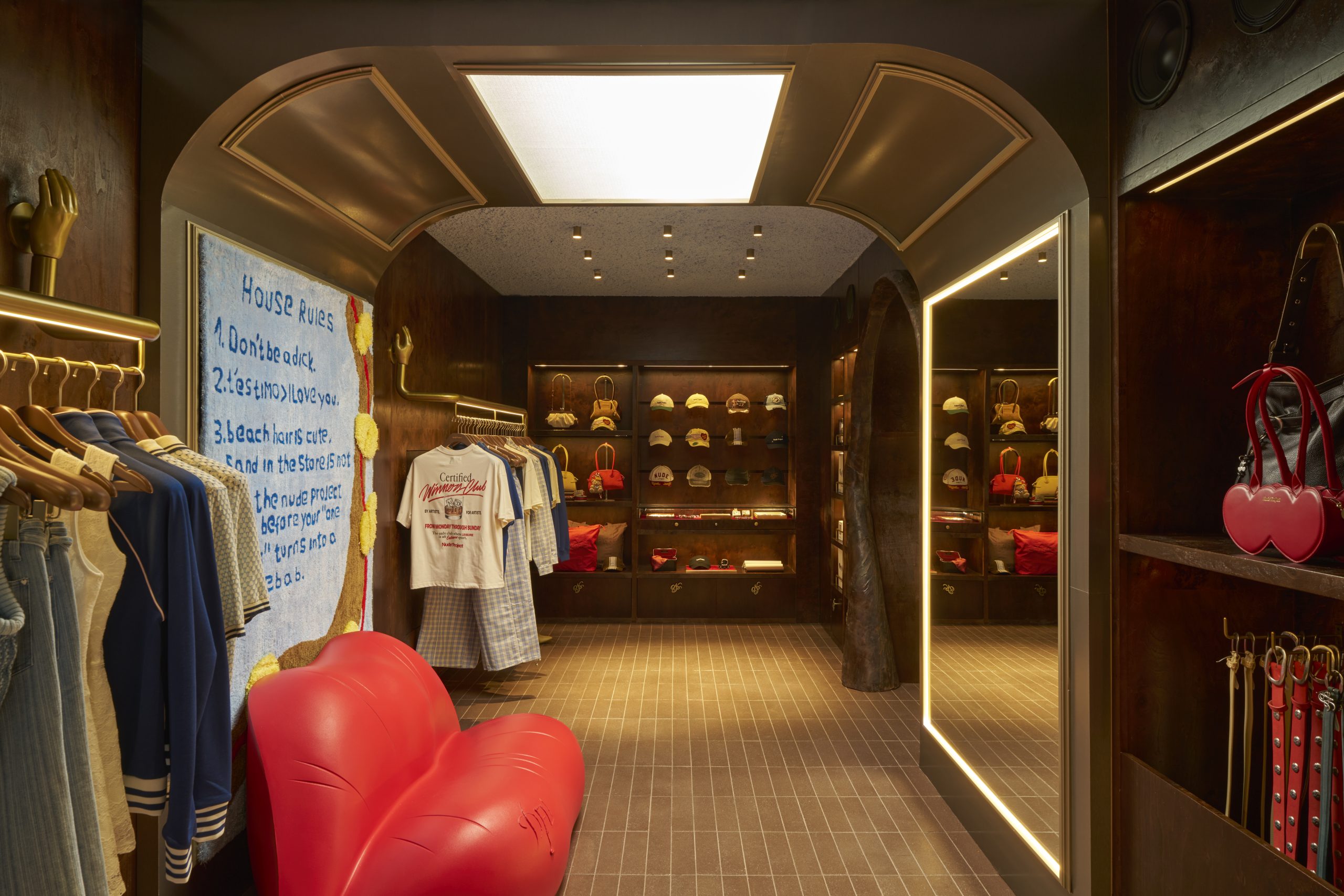 Old Hollywood glamour, vinyls, a photobooth spot, a magazine display, extravagant fitting rooms, their iconic “house rules” portrait, nearly four-meter ceilings and even a huge speaker is more than enough to convince you to visit the new flagship. Plus, who doesn’t enjoy the Catalan-Spanish lifestyle?