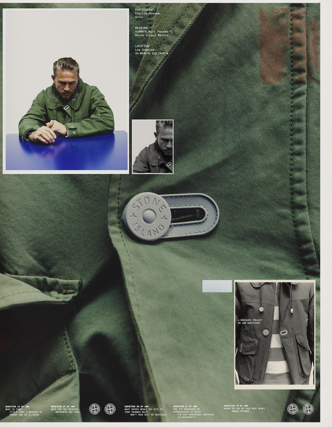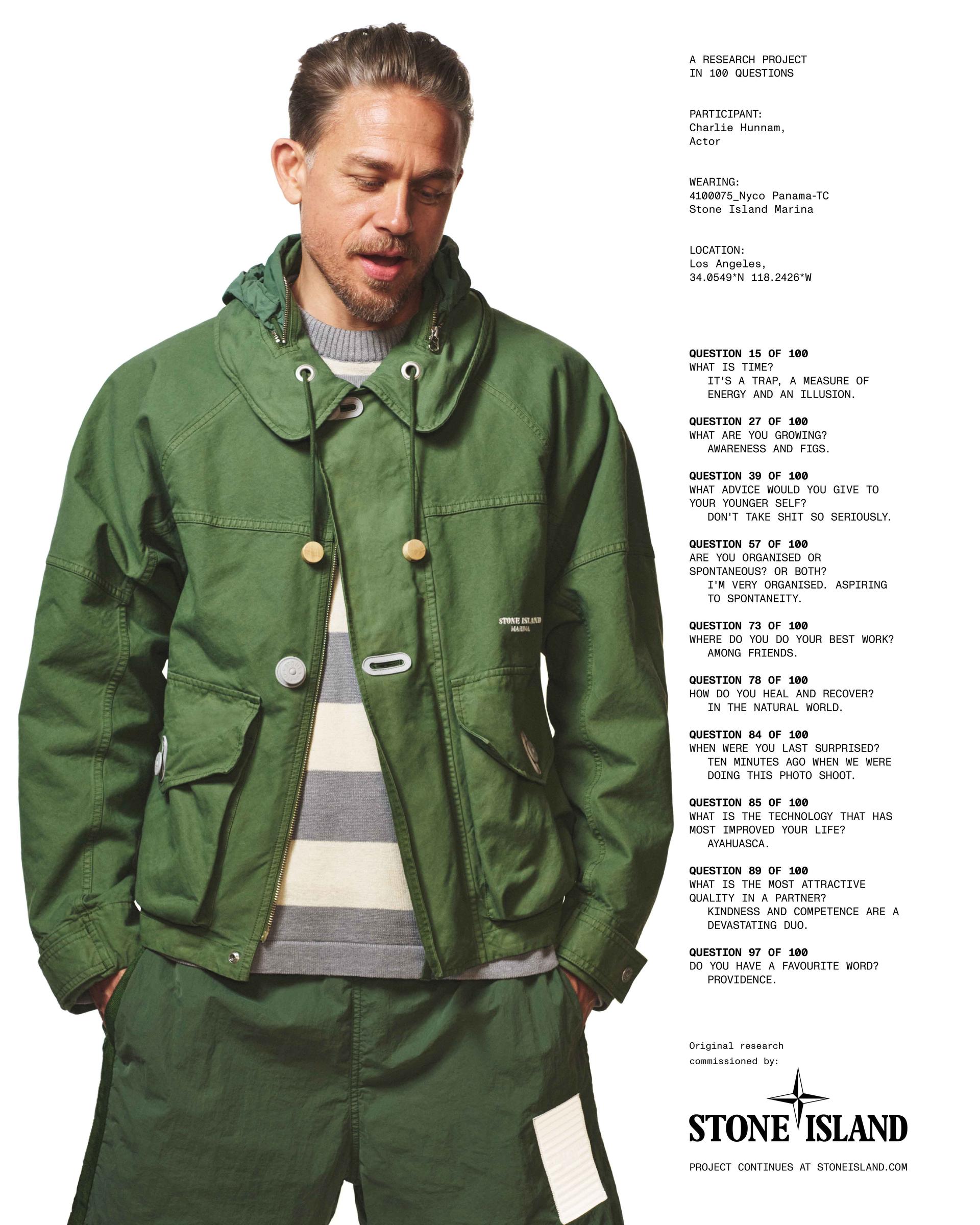 Stone Island has always had a knack for choosing the right faces: people who carry the brand’s weight without overshadowing it and that match the audience aspirations, for this drop, Stone Island called on Charlie Hunnam, and it makes so much sense,